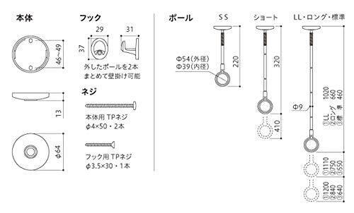 本体:亜鉛ダイカスト(メッキ仕上)/カバー:亜鉛ダイカスト(塗装仕上)/ポール:ステンレス/ポール先端:亜鉛ダイカスト(メッキ仕上)/リング:ナイロン