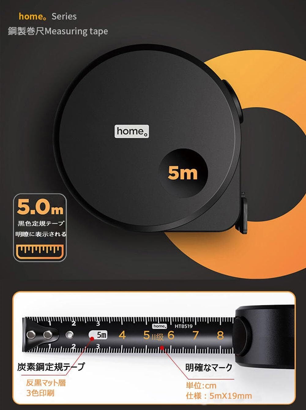 メジャー 5m メジャー·巻き尺 巻尺 巻き尺、高品位炭素鋼製 明確なマークと2mまで延長可能 水と錆に強い テープのエッジは手を切らないように不動態化されています 外観がかっこいい デザイナーが好むサイズ 家庭の測定用、やはり一家に1台ですね (ブラック)