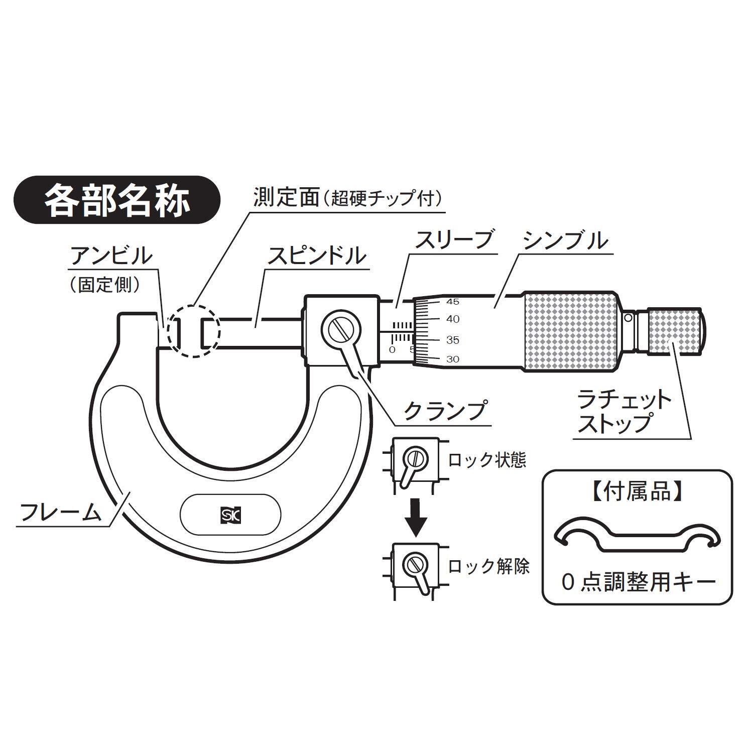【数量限定】新潟精機 SK 標準外側マイクロメーター 0-25mm MCQ-25