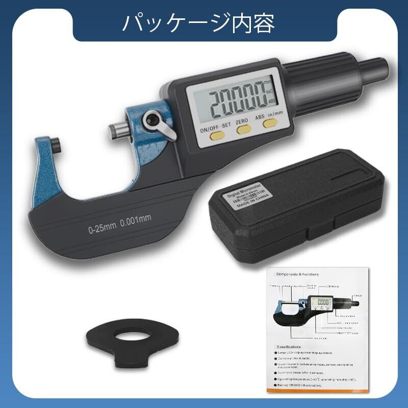 【限定セール】Beslandsデジタルマイクロメーター 厚み測定器 0~25mm 電子マイクロゲージ マイクロメーター 0.001mm LCDディスプレイ 日本語取説付き