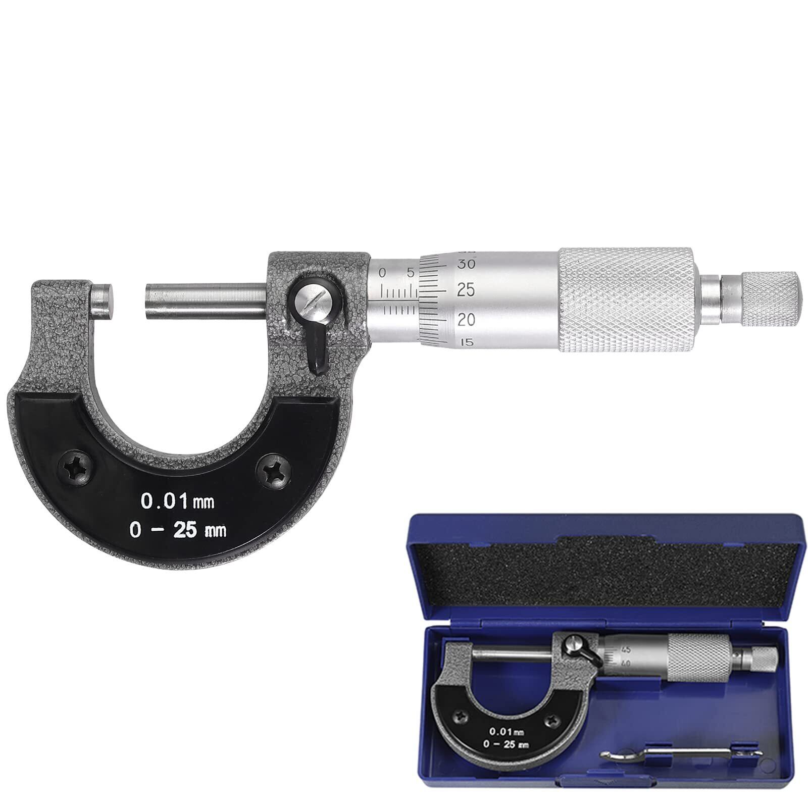 AUTOUTLET 外側マイクロメーター 0-25mm(0.01mm目盛) メトリック 外部キャリパー 強い耐久性 長寿命 ロック&レンチ付き 読みやすい 作業用 精密測定ツール
