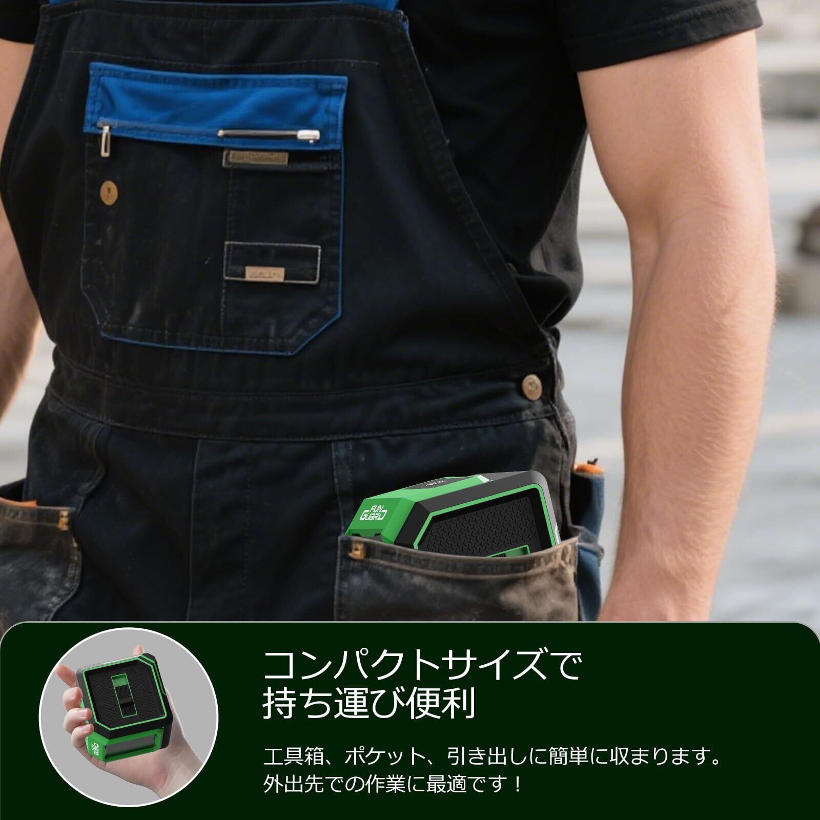 【高精度と高い視認性】Funguardレーザー墨出し器は、クロスラインレーザーを簡単に調整するためにバージョンをアップグレードされました。 普通のレーザー墨出し器より精度・輝度が高い、10mで±3mmの高精度を持っています。