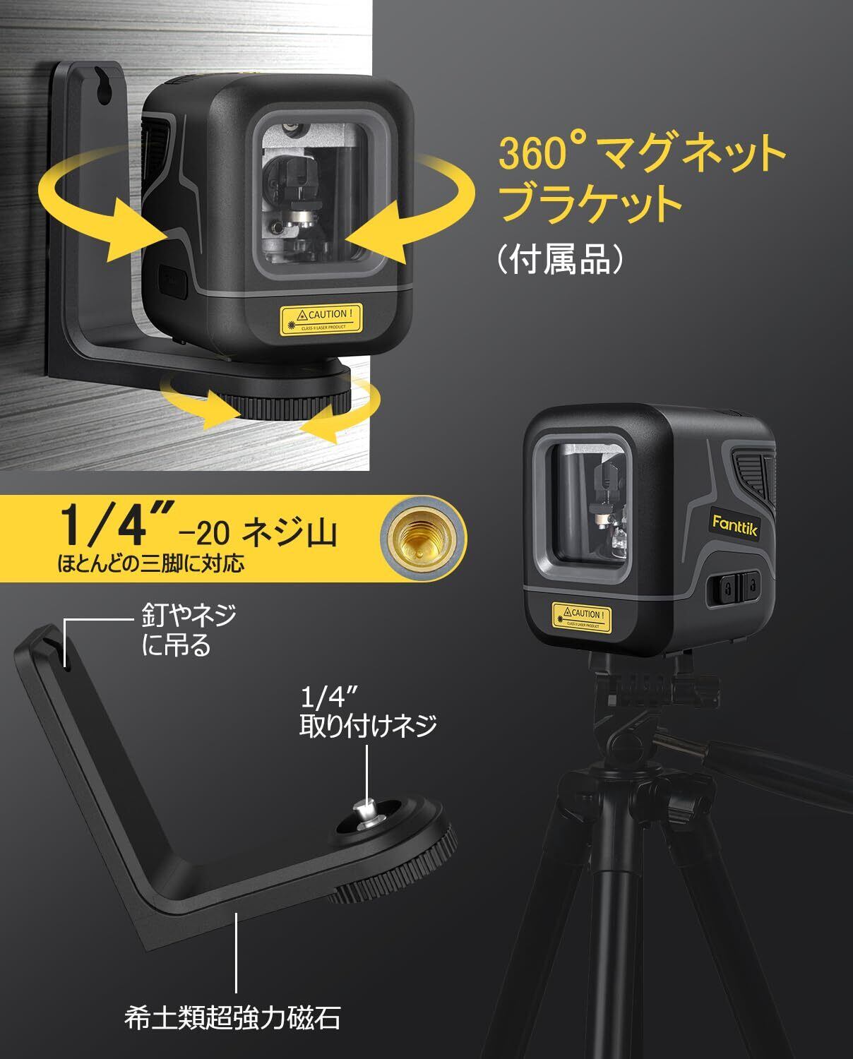 【人気商品】Fanttik D2 レーザー墨出し器 自動水平補正 レーザーレベル グリーン クロスライン 30m作業範囲 360°回転 USB-C 充電式 パルスモード 磁気ブラケット IP54 耐衝撃 収納袋 建築測定 インテリア DIY
