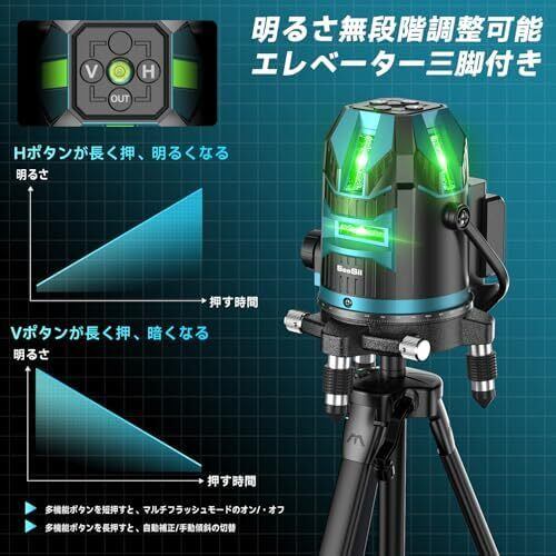 【2025最新改良】SEESII レーザー墨出し器 グリーンレーザー 5ライン 墨出し 三脚とエレベーター1台2役 電量LCDディスプレー搭載 明るさ無段階調整 水平器レーザー 5線6点 レーザーレベル 三脚 屋外 回転レーザー線 高輝度 高出力 軽量作業 タイルの張替え 建設 建築 DIY 2個大容量バッテリー エレベーター三脚 収納箱付き 型番L5-B1-Pro