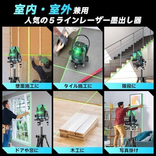【特価セール】【2025最新改良】SEESII レーザー墨出し器 グリーンレーザー 5ライン 墨出し 三脚とエレベーター1台2役 電量LCDディスプレー搭載 明るさ無段階調整 水平器レーザー 5線6点 レーザーレベル 三脚 屋外 回転レーザー線 高輝度 高出力 軽量作業 タイルの張替え 建設 建築 DIY 2個大容量バッテリー エレベーター三脚 収納箱付き 型番L5-B1-Pro