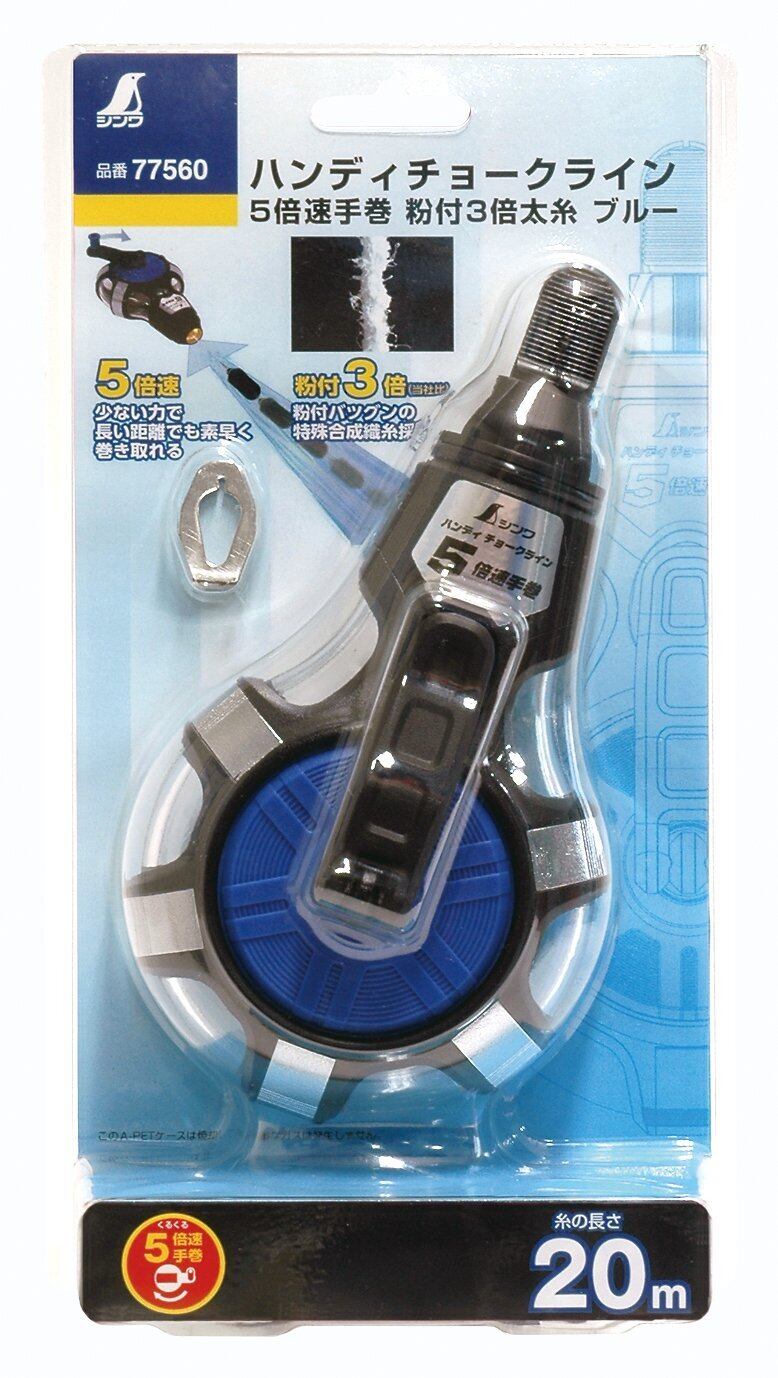 シンワ測定(Shinwa Sokutei) ハンディチョークライン 5倍速手巻 粉付3倍太糸 ブルー 77560