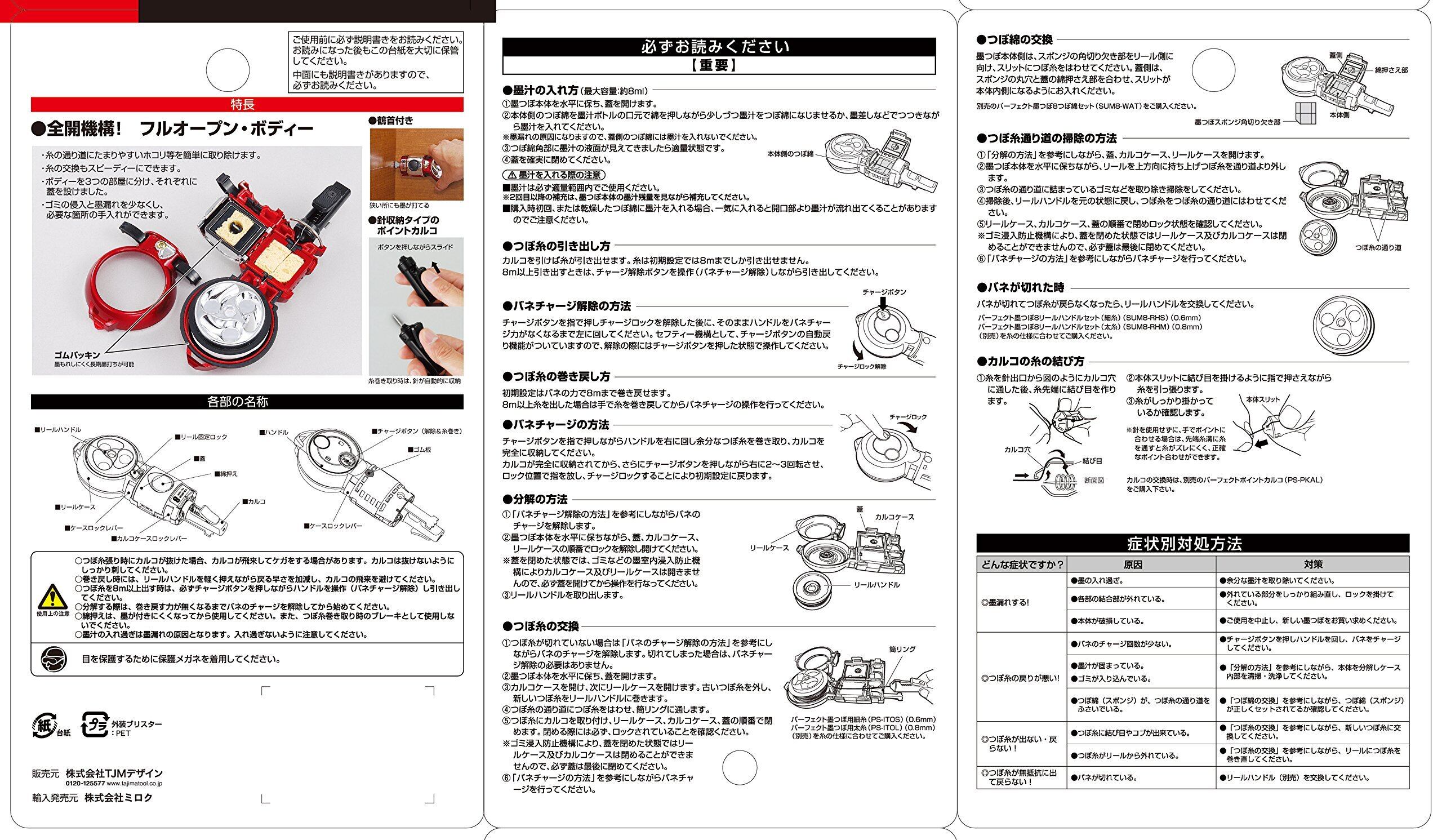 自動巻 付属カルコ:糸巻取り時、針が自動的に収納する「ポイントカルコ」標準装備 付属糸:「パーフェクト墨つぼ用細糸」(太さ0.6mm)