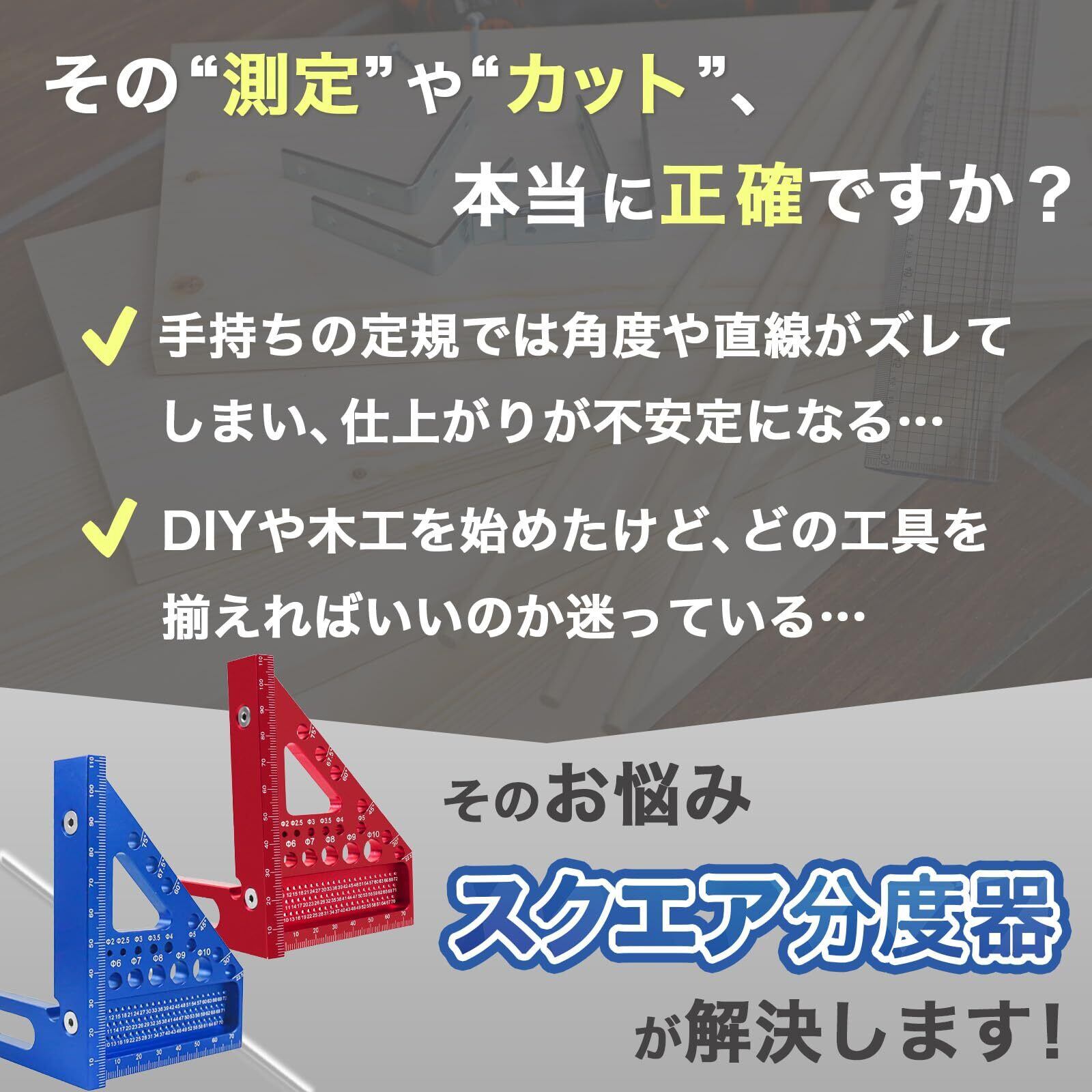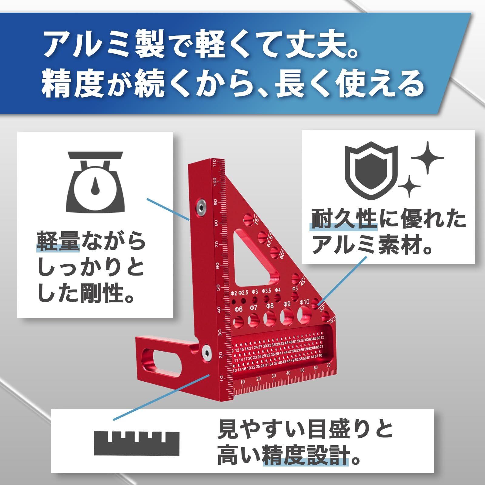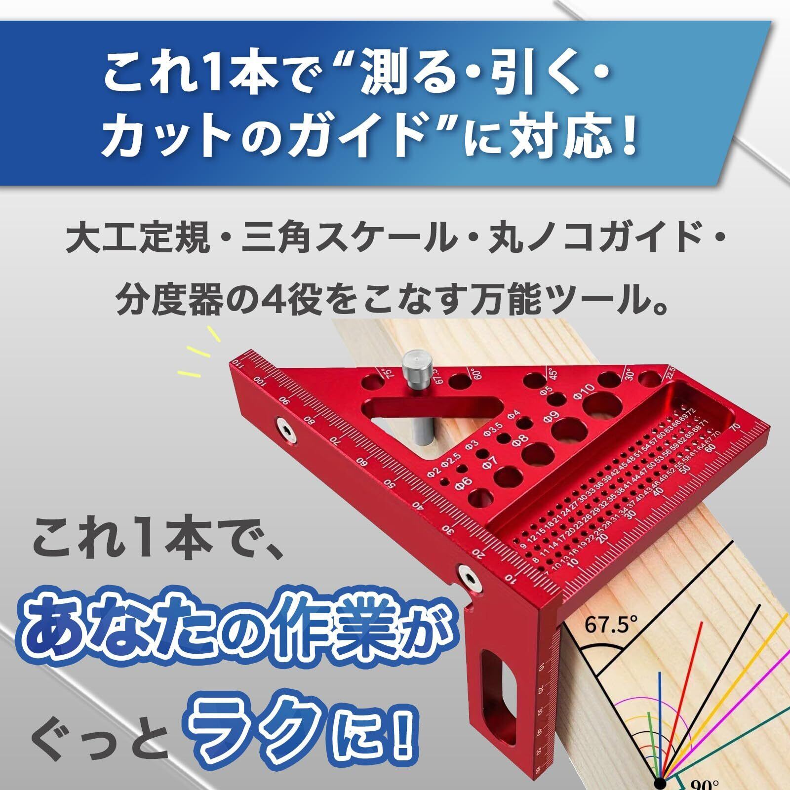 三角スケール アルミ スコヤ 直角定規 分度器 ケガキゲージ 差し金 ダボピン付き まるのこ定規 diy 工具 さしがね レッド