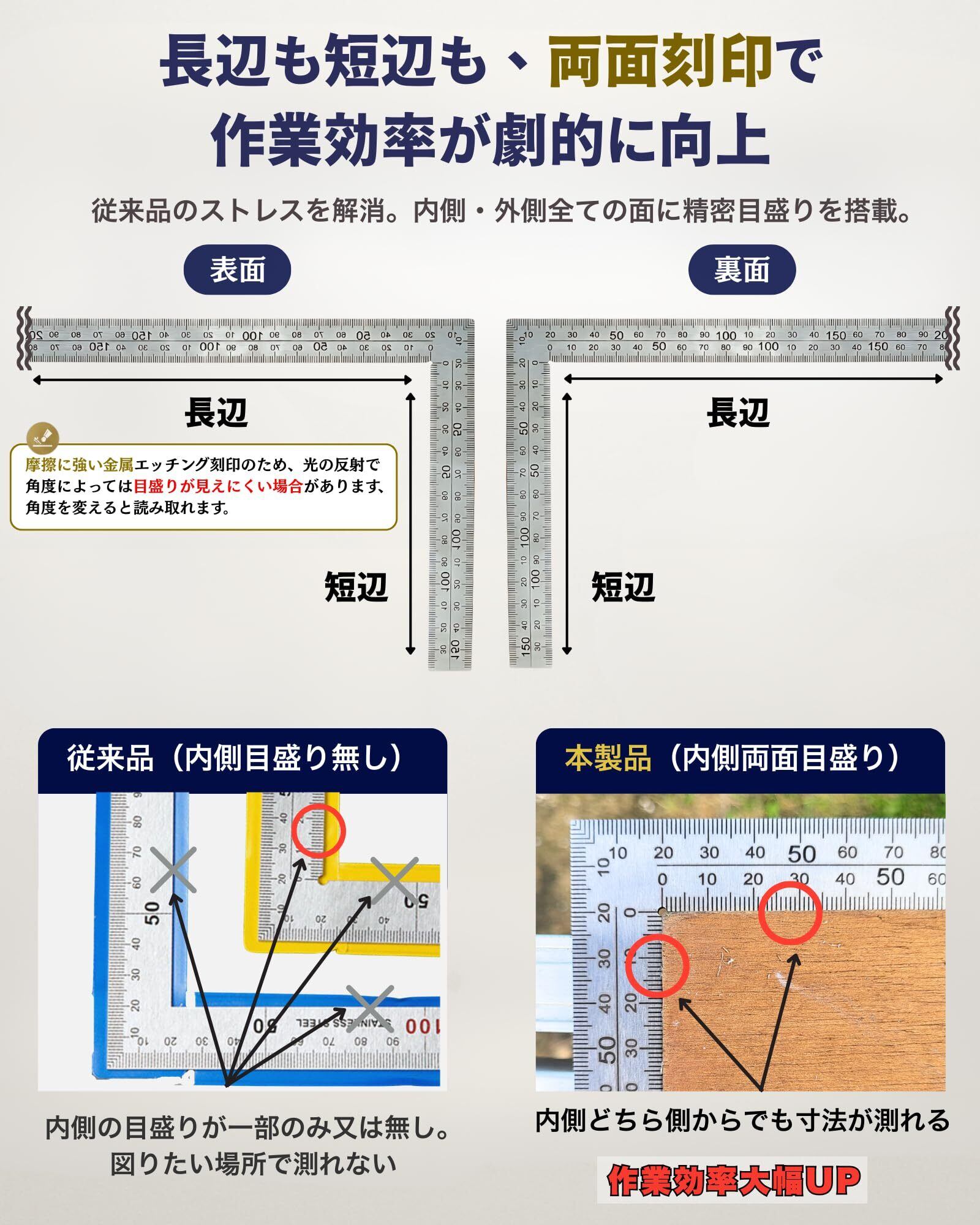 差金 差し金 スコヤ ステンレス 30cm 15cm 曲尺 曲げ尺 両面目盛り L字定規 直角 DIY 木工 大工用 1本