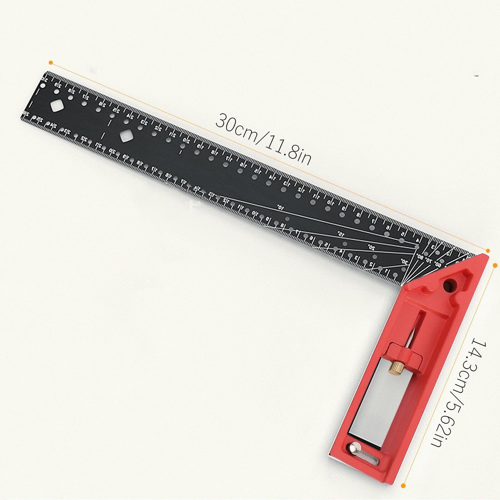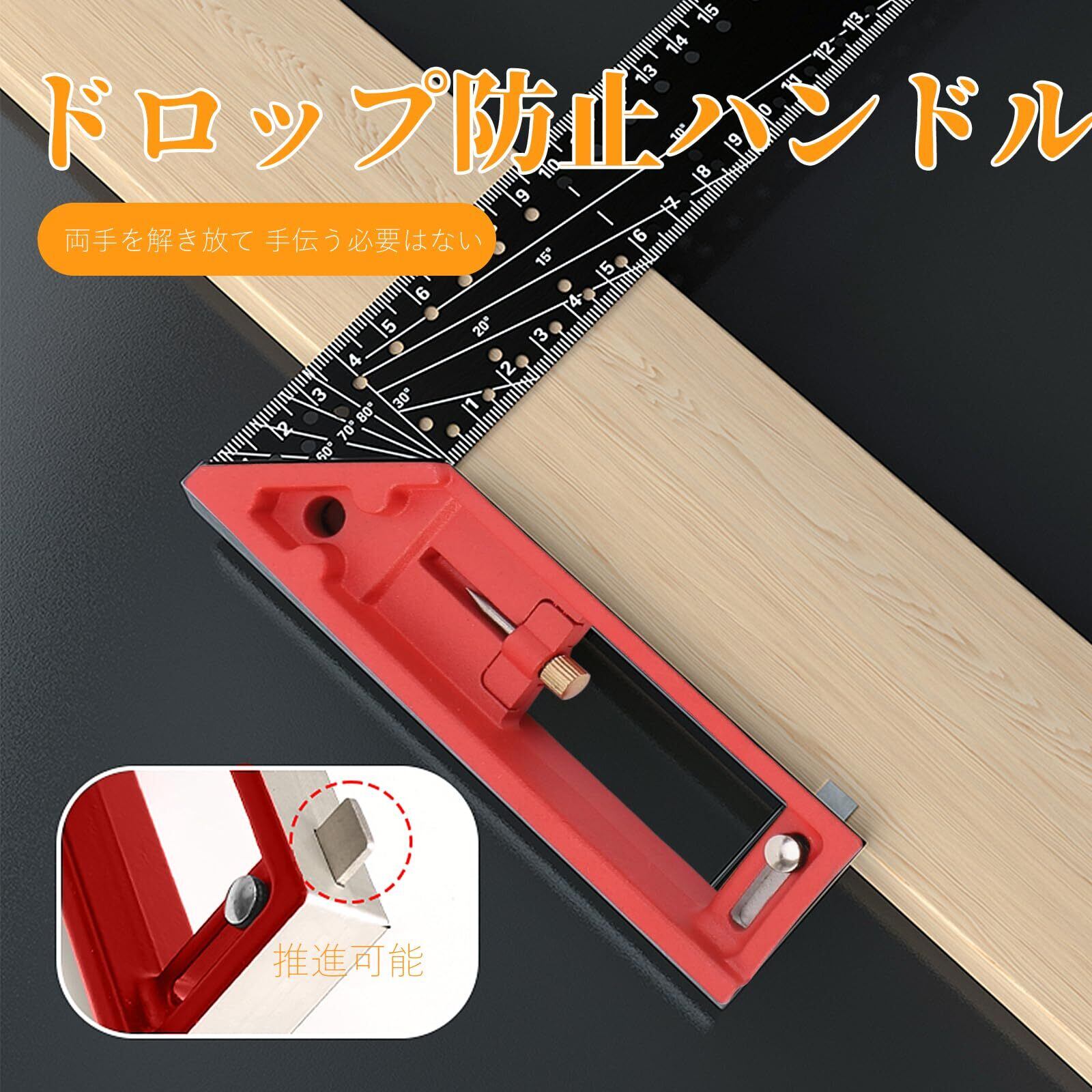 【在庫限り】マルチ角度測定定規 2024新しいプロ仕様の測定ツール 45/90°多機能直角度測定テープ 300mm×140mm アルミニウム合金 品質プロの測定ツール 木工特殊測定テープ 正確な測定 木工用 描画用 赤