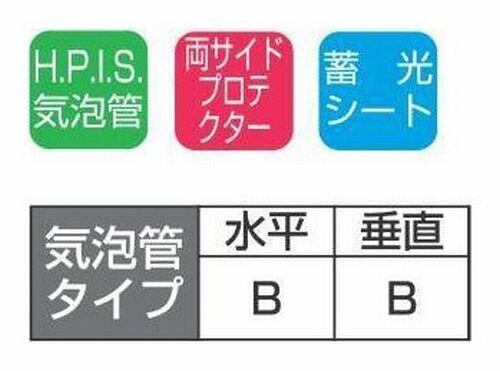 ・用途 水平・垂直を測る ・特徴 ・キズのつきにくい特殊ハードアルマイト表面処理。 ・落下時に精度を守り、建材を傷つけないエラストマー製プロテクターを両サイドに装置。 ・どの角度からも見やすく、割れない、くるわない気泡管。 ・仕様 ・長さ………150mm ・重量………105g