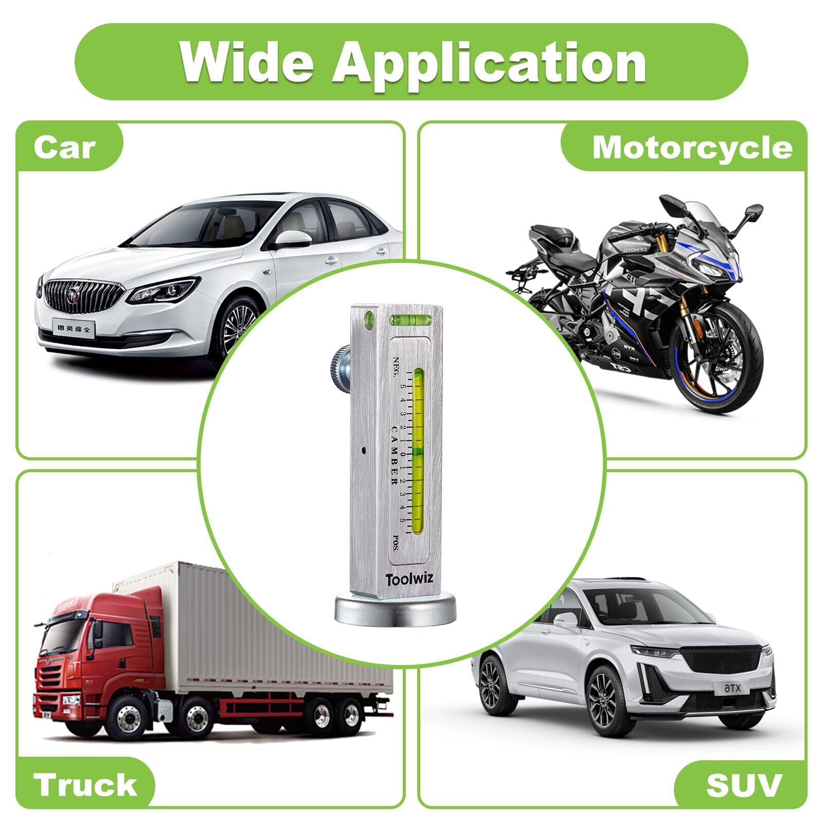 【 幅広い車種に対応】:BMW、ベンツ、シボレー、トヨタ、ホンダ、ジープ、シトロエンなど、さまざまな車種に対応するホイールアライメントツールです。キャスター・キャンバーゲージとして使用可能です。