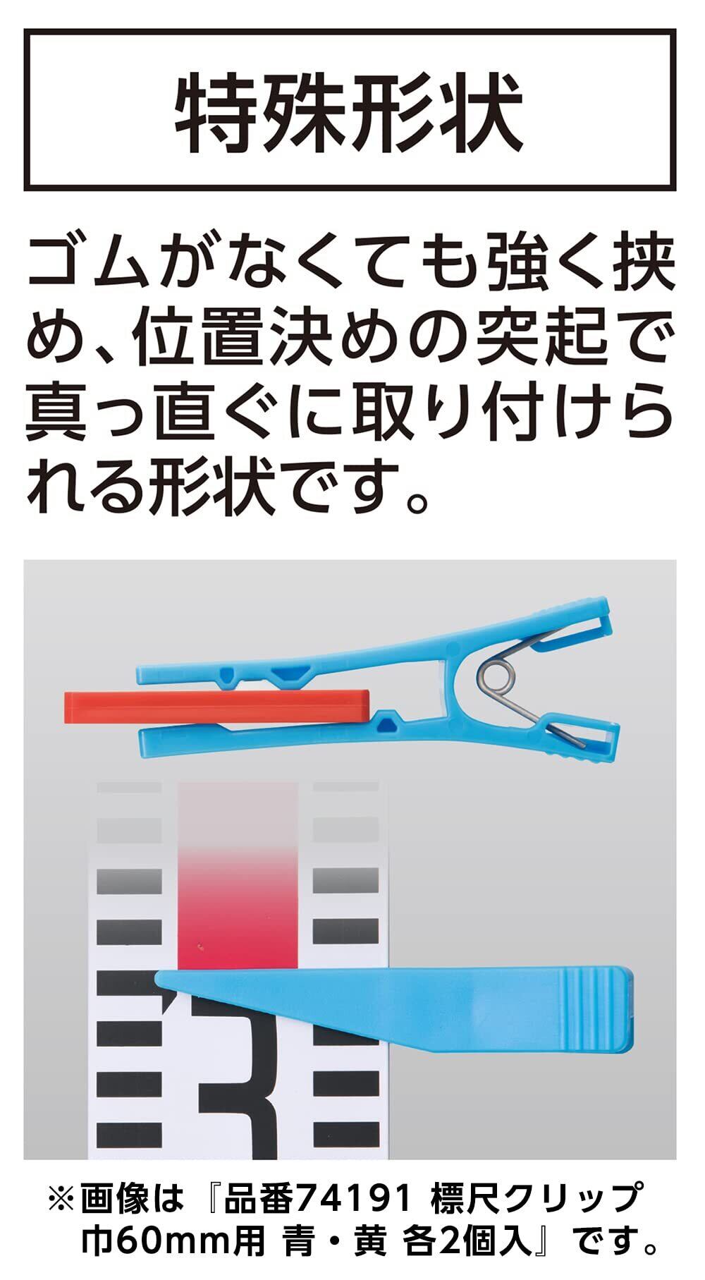 シンワ測定(Shinwa Sokutei) 標尺クリップ 巾60㎜用 赤・黄 各2個入74192