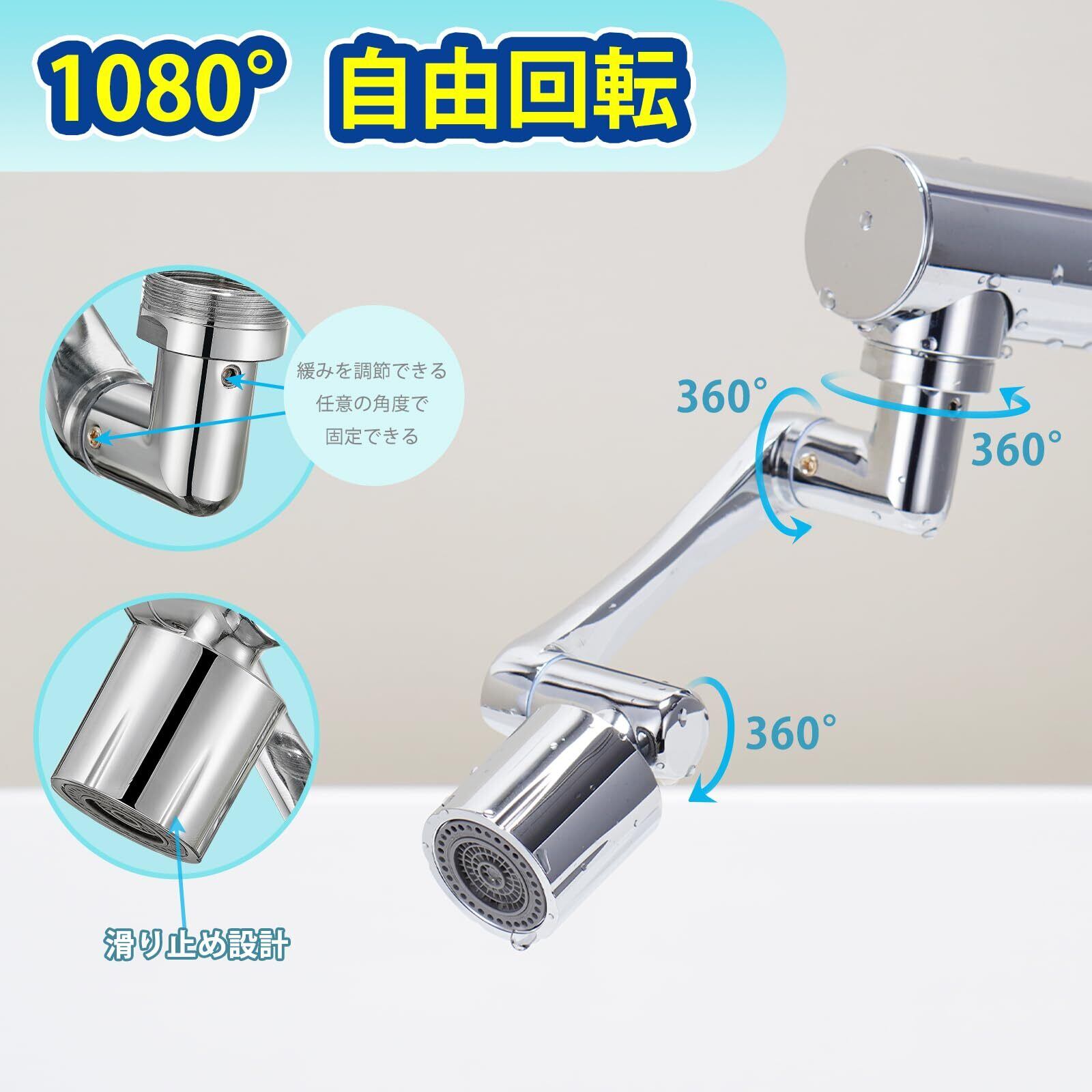 「1080度自由回転設計」水流の方向を自由に調節できて、洗い物が楽になります