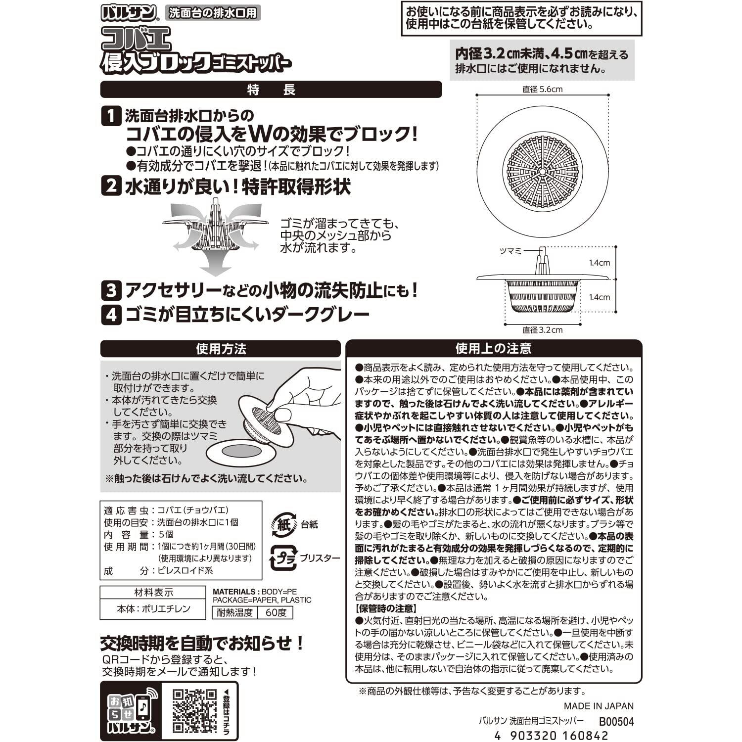 日本製。洗面台排水口用5個入り