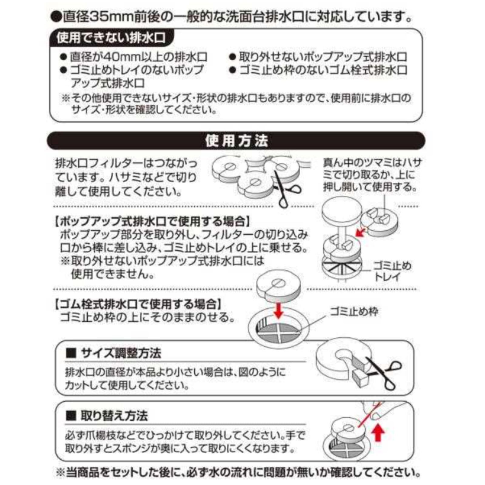 洗面台の排水口にはめるだけで、髪の毛・ゴミ・糸くずをキャッチし、排水管を詰まりにくくします。