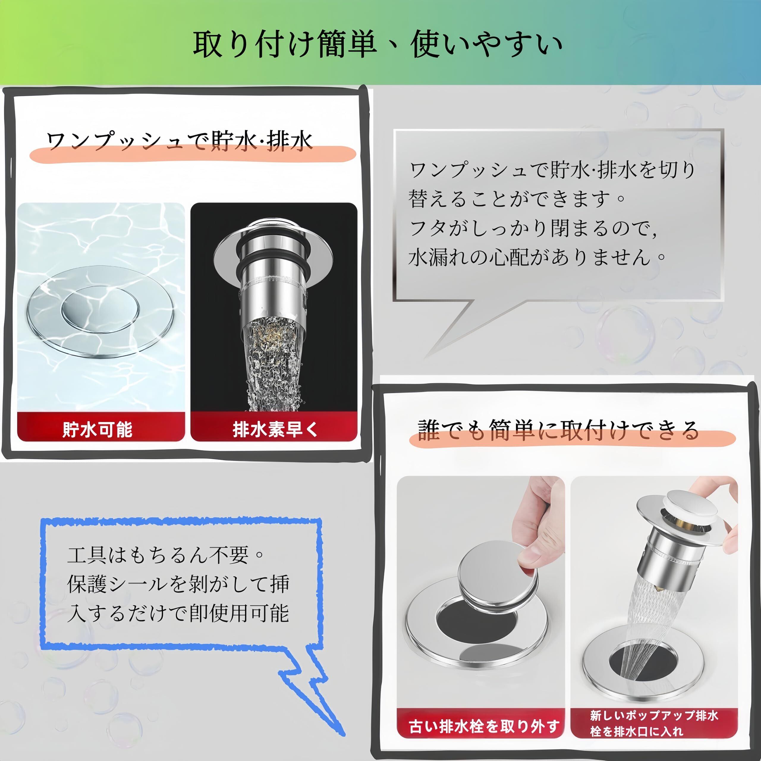 【品質】:今後とも、お客様に最高品質の製品とより良いサービスを提供するために尽力してまいります。洗面台ポップアップ 排水栓に1年間の期間内で問題が生じた場合は、お早めにお問い合わせください。迅速に対応いたします。