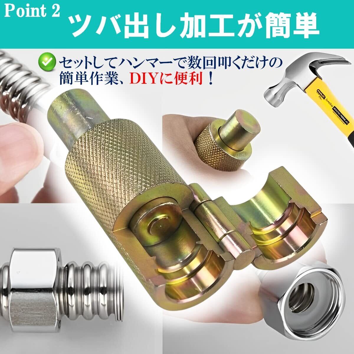 【2025最新】水道管 フレキ管 ツバ出し工具 3山 ハンマータイプ フレキパイプ用 ツバ出し機 カシメ 防滑加工 DIY 水回り メンテナンス 補修 修理 (16mm 4分)