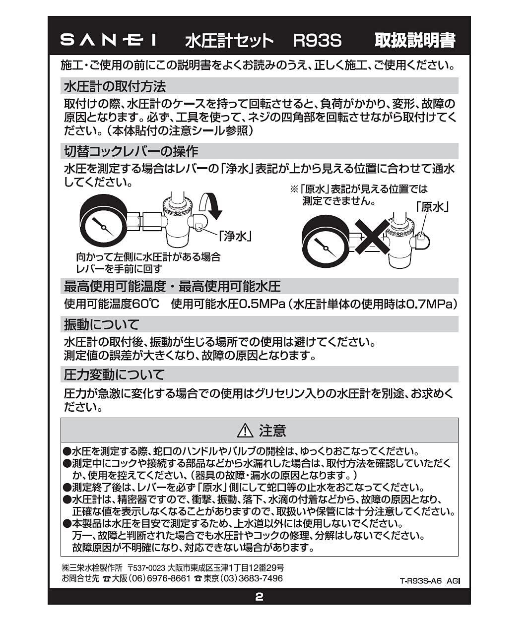 SANEI(サンエイ) 水圧計セット 上水道用 アダプター・シールテープ付き R93S