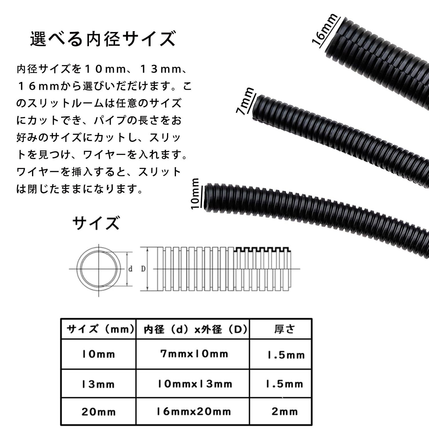 コルゲートチューブ 黒 スリット入 コルゲート PP フレキシブル ガーデン オフィス用 配線ケーブル類の結束/保護 噛みつき防止 (φ10-5m)