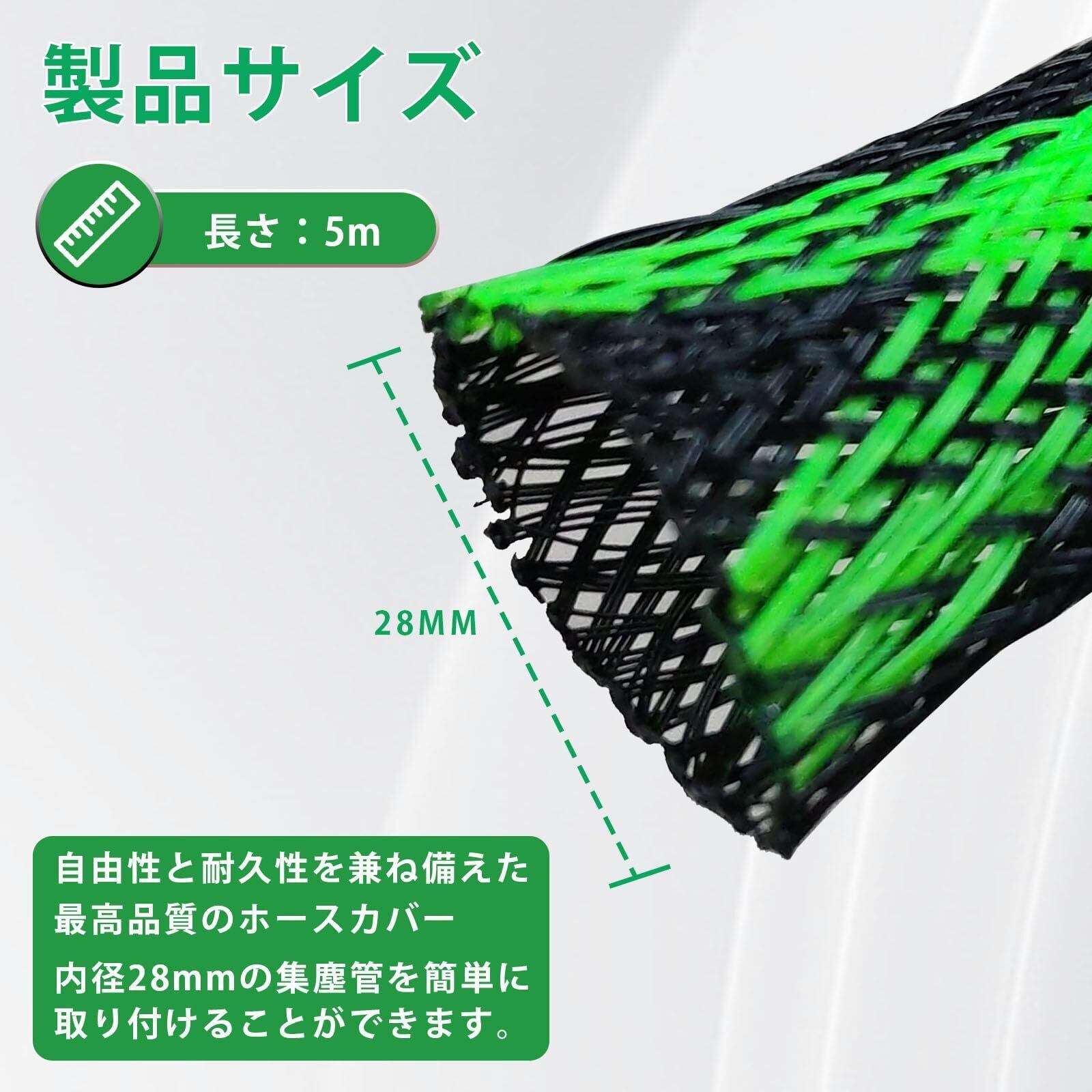 PakOne 集塵ホースカバー 集じんホースカバー 内径28Φ5m 集じん機 チューブを完全フルカバー 厚い素材 耐久性 2本のケーブルタイが付属 (緑色)