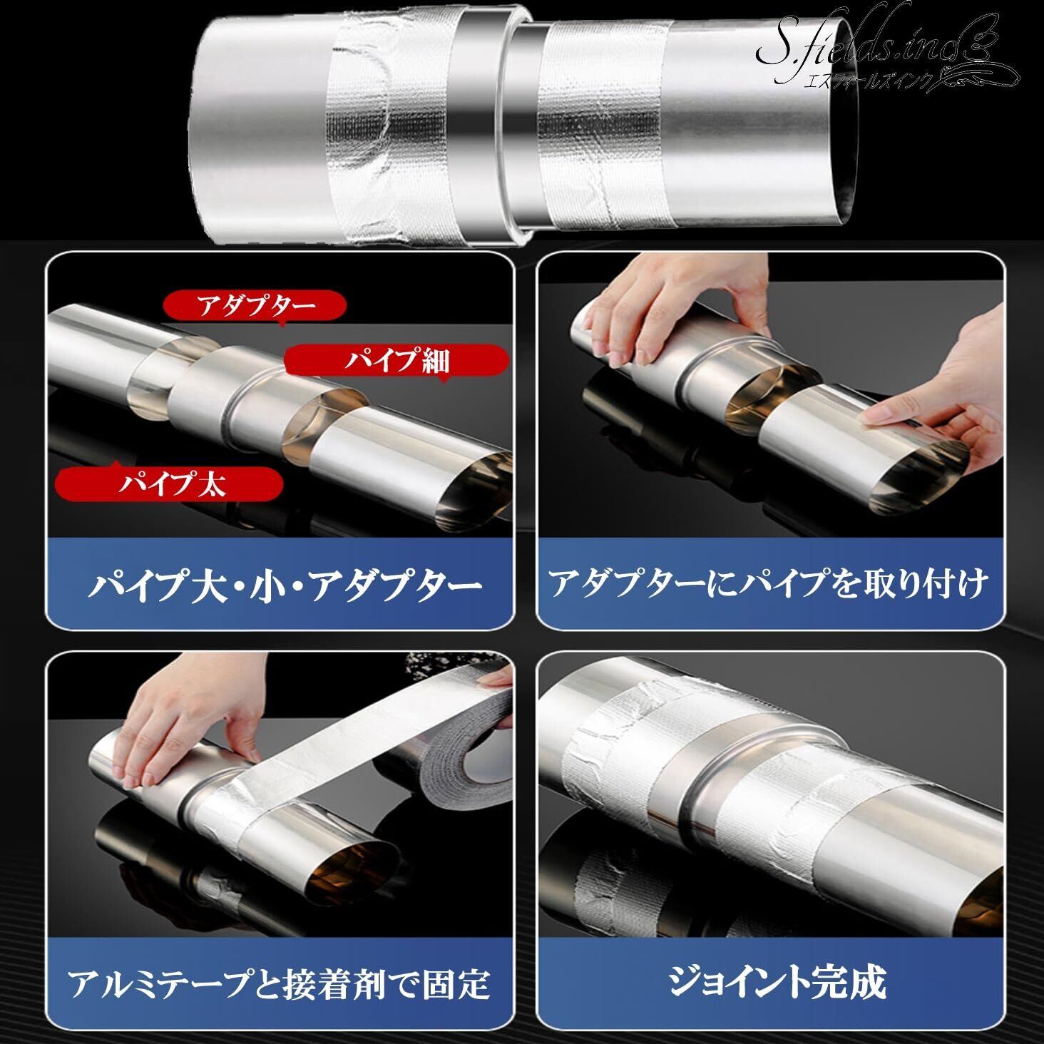 取り付けは非常に簡単で、両側にパイプを接続し、アルミテープと接着剤で固定するだけ。ステンレスパイプとアルミパイプの両方に対応しているので、どんな環境でもスムーズに設置可能です。