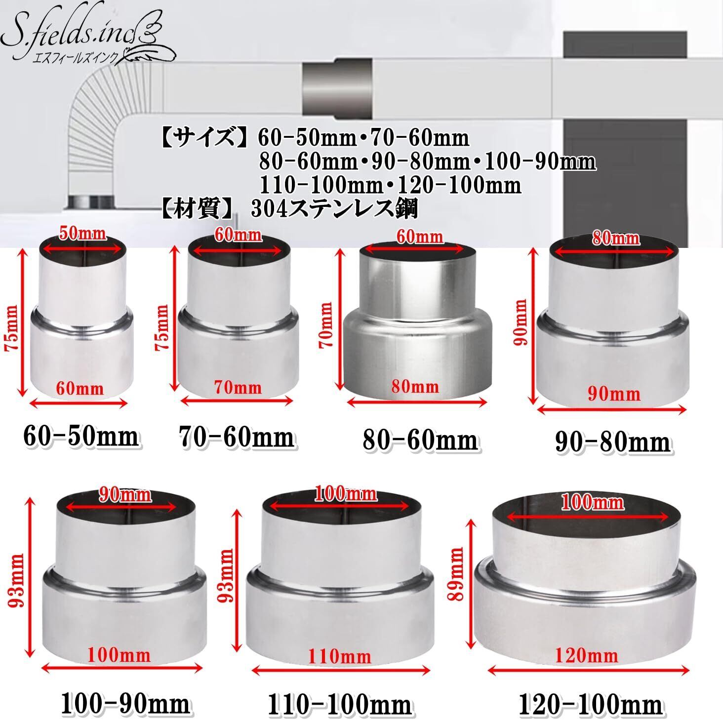 【サイズ】60-50mm・70-60mm・80-60mm・90-80mm・100-90mm・110-100mm・120-100mm 【材質】304ステンレス鋼