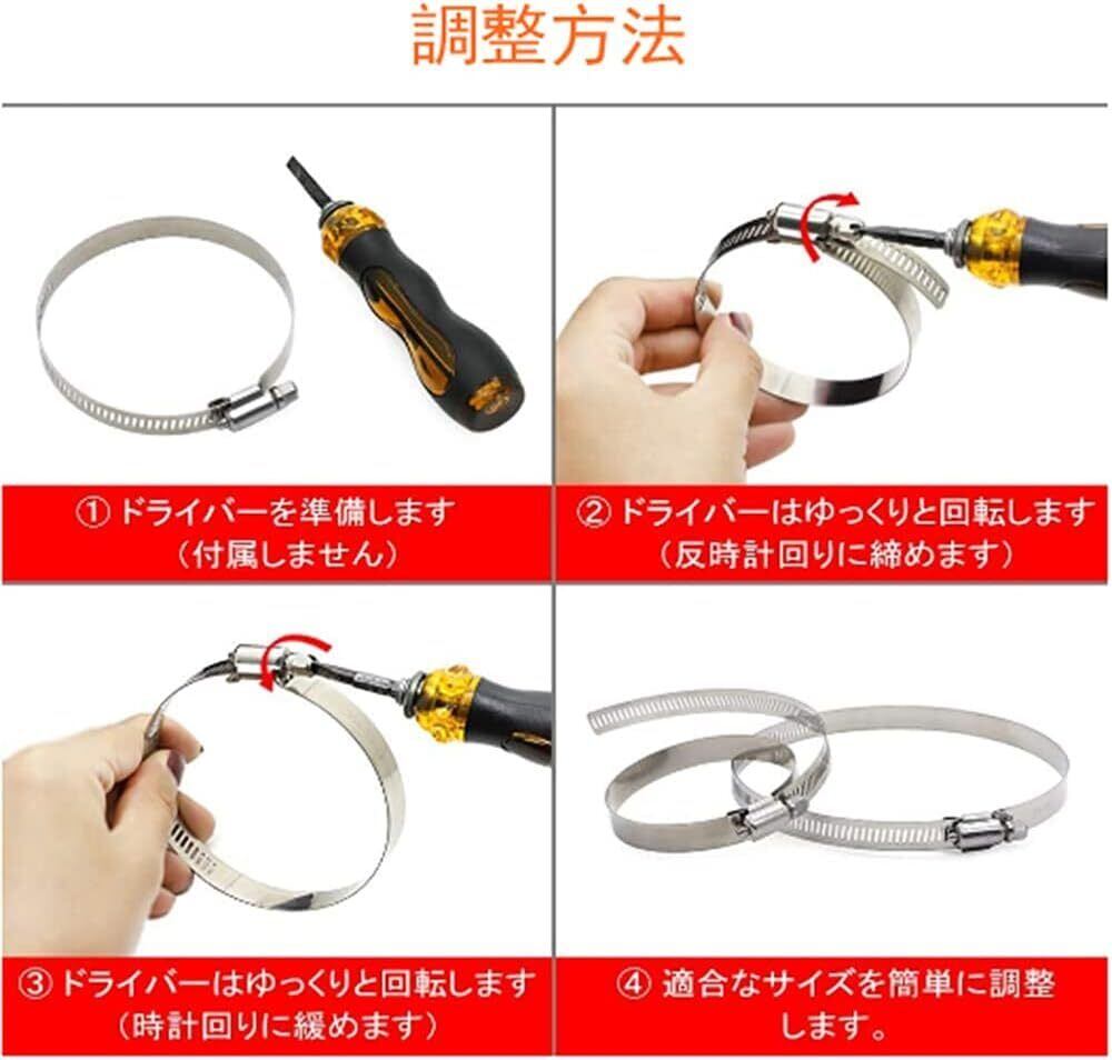ホースバンド 304ステンレス ホースクリップ 対応 調整可能 強力固定 ネジタイプホース締め金 ホースバンド 汎用5個入り (φ27~51mm)