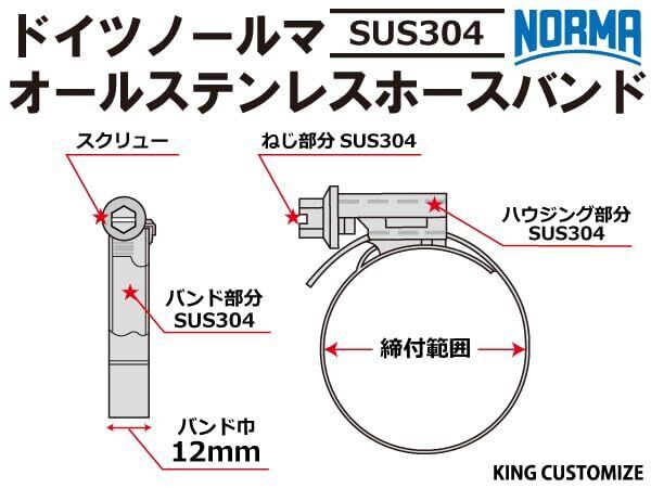 【1個】サビ全面排除 ホースバンド オールステンレス SUS304 ドイツ ノールマ NORMA ホースバンド W4/12 50-70mm 幅12mm 汎用品