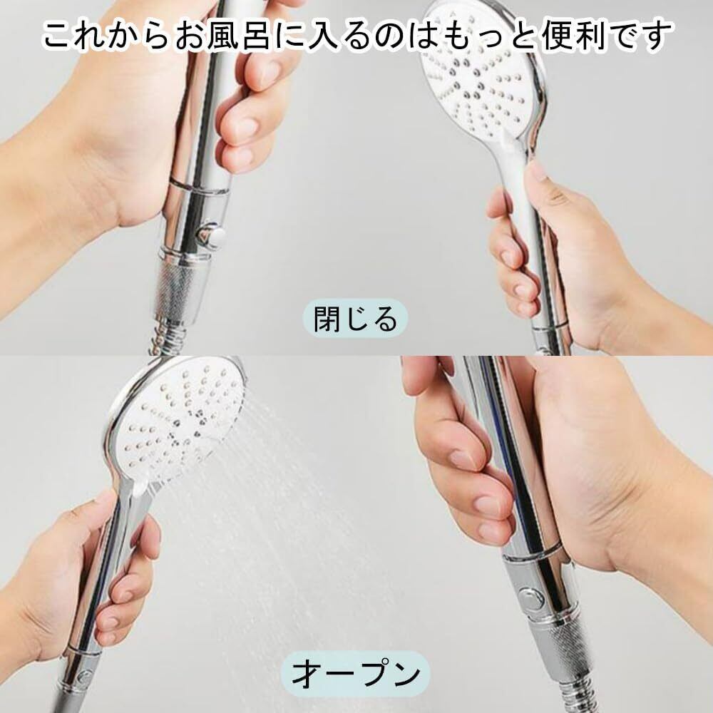 シャワー ストップボタン シャワーアダプター 1個セット G1/2 止水弁 水量コントロールバルブ 調整可能 操作簡単 漏れ防止 水流量調節弁 プッシュボタン 水流制御バルブ ユニバーサルサイズ 水流調整 銀