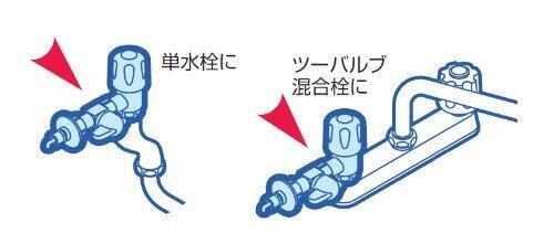JIS規格のツーバルブ混合栓や単水栓の上部と交換して分岐