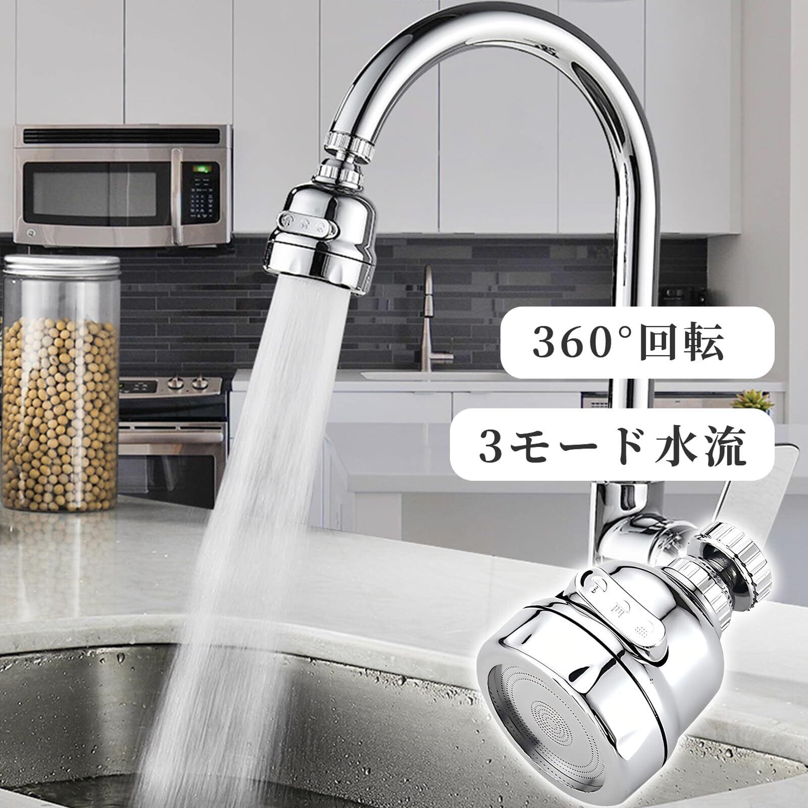 蛇口 キッチンシャワー 蛇口シャワー 蛇口に取り付けるだけ 節水 ノズル 首振り 3モード 台所 360度回転 水漏れの防止 キッチン 洗面所 浴室 トイレにも適用可能 パッキン付き