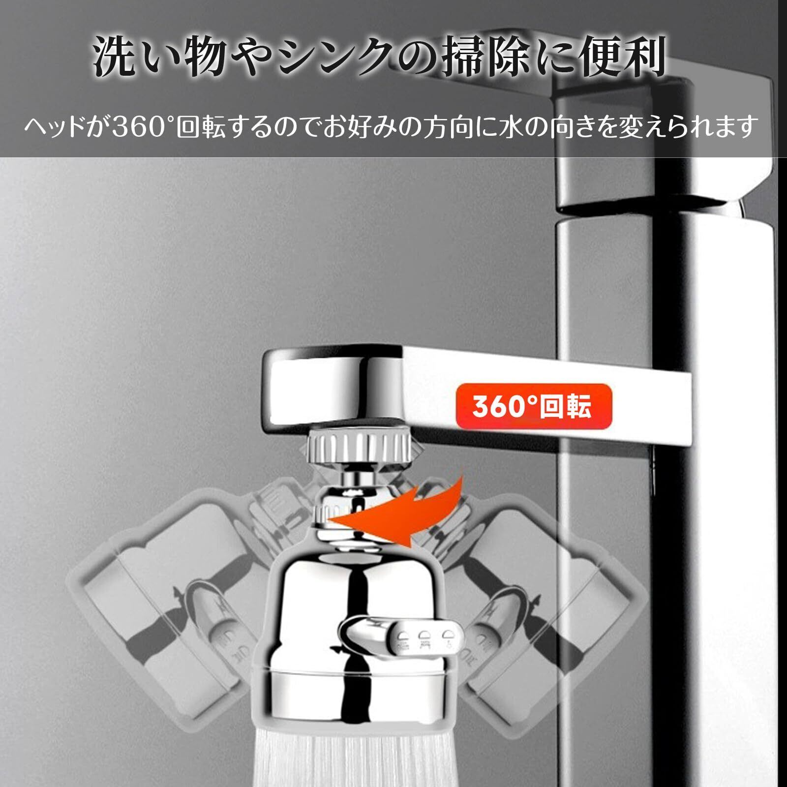 【360度回転】ヘッドの向き方向が変えられるため、水流の方向が自由に変換できます。気泡仕様で四方八方へ飛び散る事はなく、水はねしにくいです。角度はあなたの選択に任せます、使いやすいです。