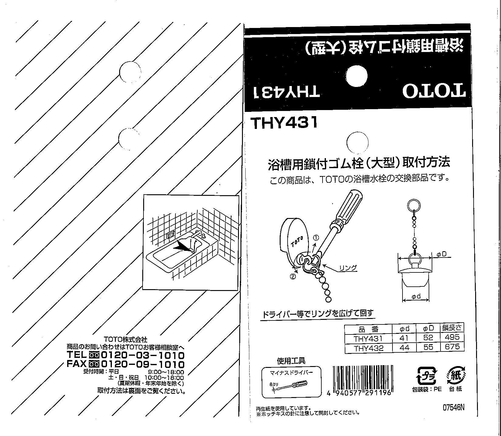TOTO バス用鎖付ゴム栓・大 THY431