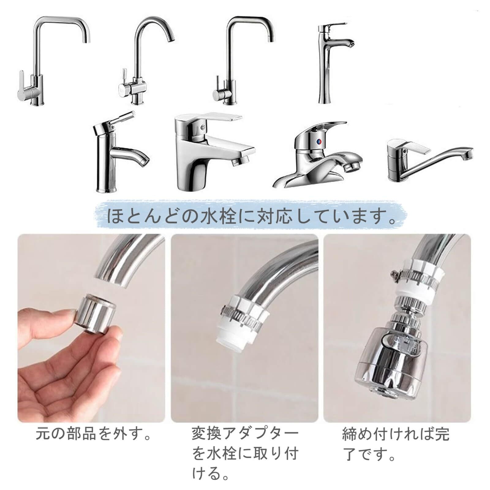 【取り付け簡単】外径22mmおよび内径24mmの標準蛇口に対応しており、付属のアダプターを使うことで15mmから21mmのさまざまなサイズに簡単に取り付けることができます。工具は不要で、誰でも手軽に取り付けられます。
