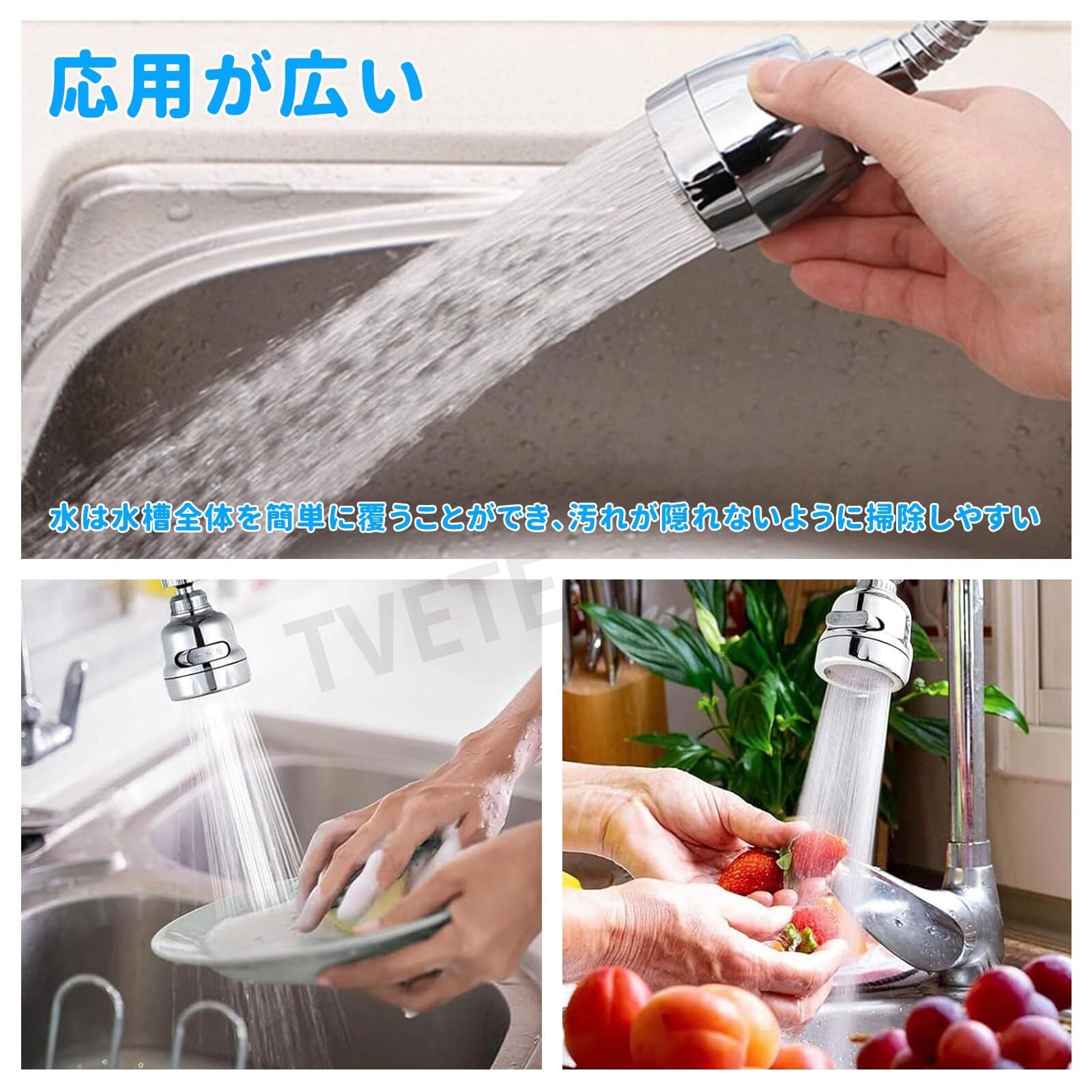 【360°回転式】水の方向を変えられて、シンクのお掃除などに便利です。