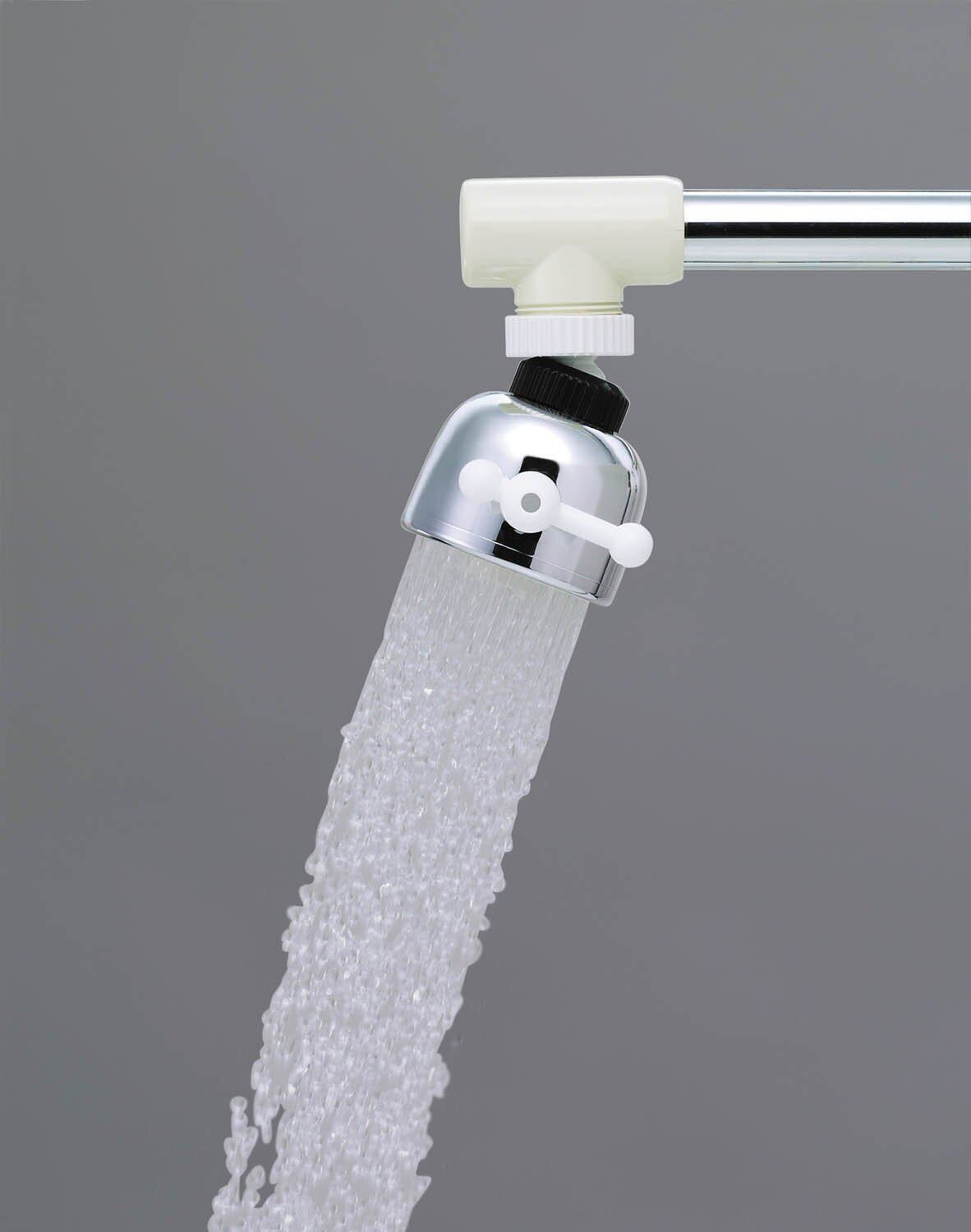 ご使用上の注意:70℃以下でご使用ください。アタッチメントで取り付ける場合、水圧の高い地域では構造上可動部に通水抵抗がかかるため、抜け落ちる事がありますので、水量をしぼってお使いください。