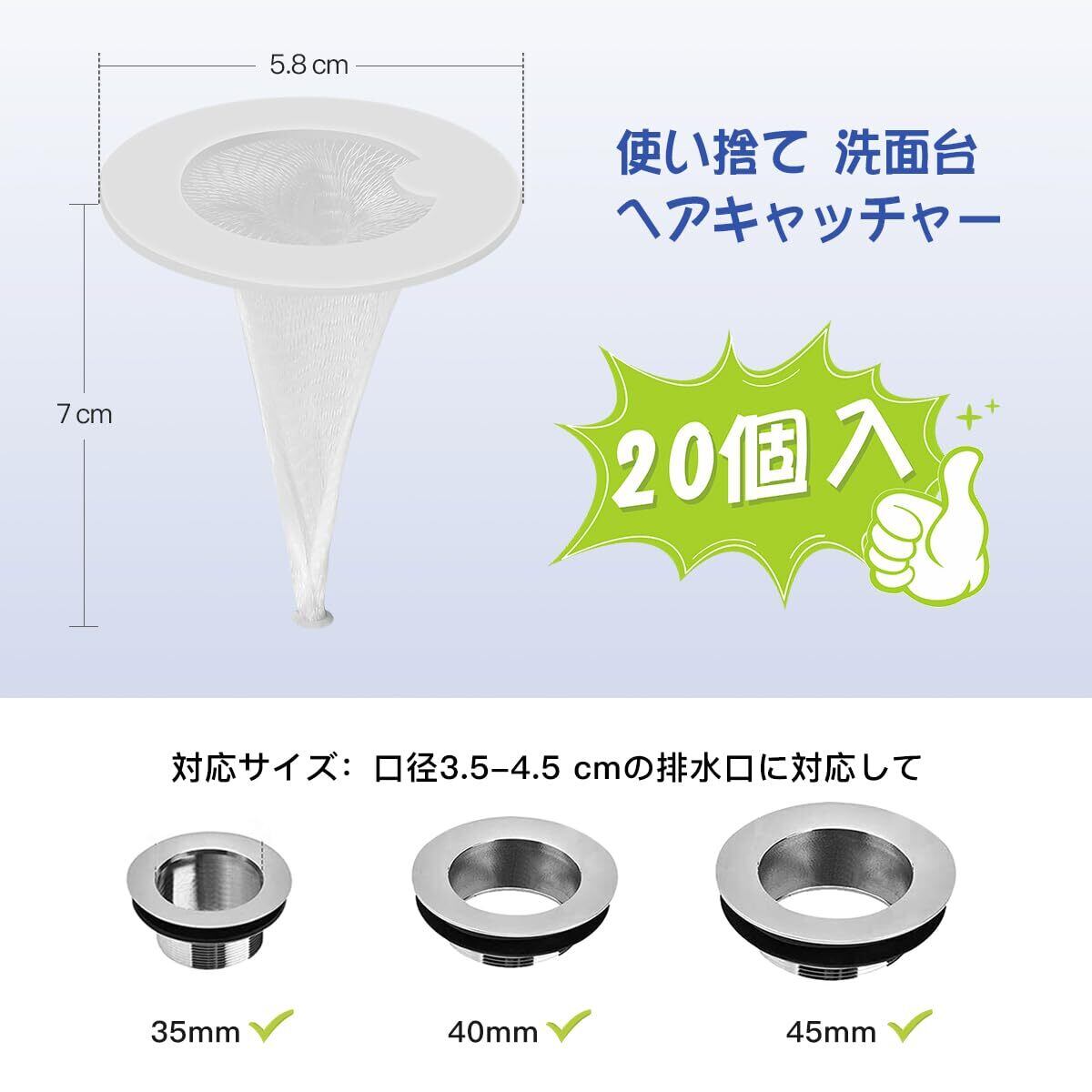 LANMU 洗面台 ヘアキャッチャー 使い捨て 20個入 使い捨てフィルター 排水口 洗面台 ゴミ受け 口径3.5-4.5 cm排水口用 目詰まり防止 排水溝 ネット