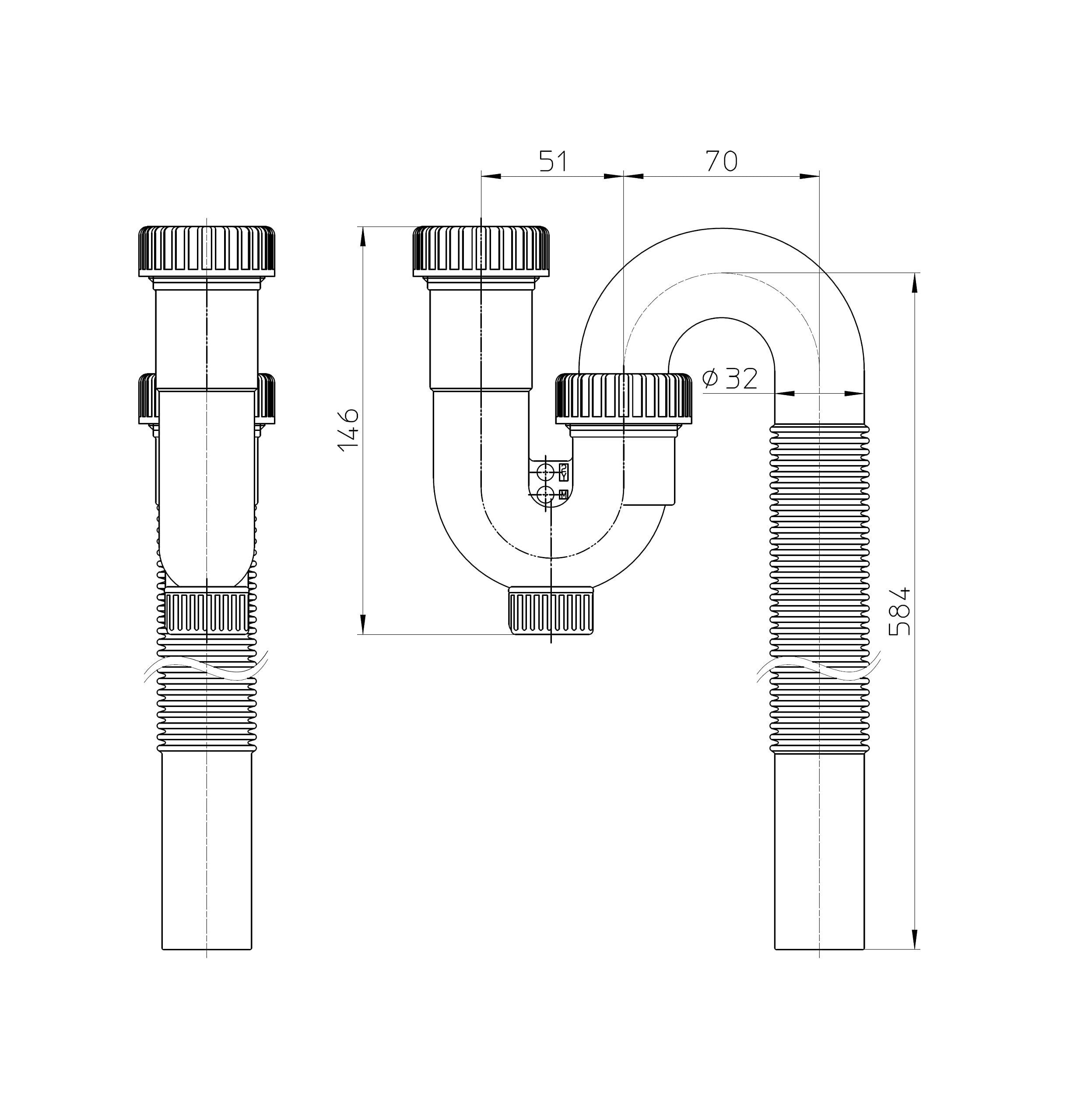樹脂製トラップ用です。パイプはジャバラのため、排水口への位置合わせが簡単に行えます。