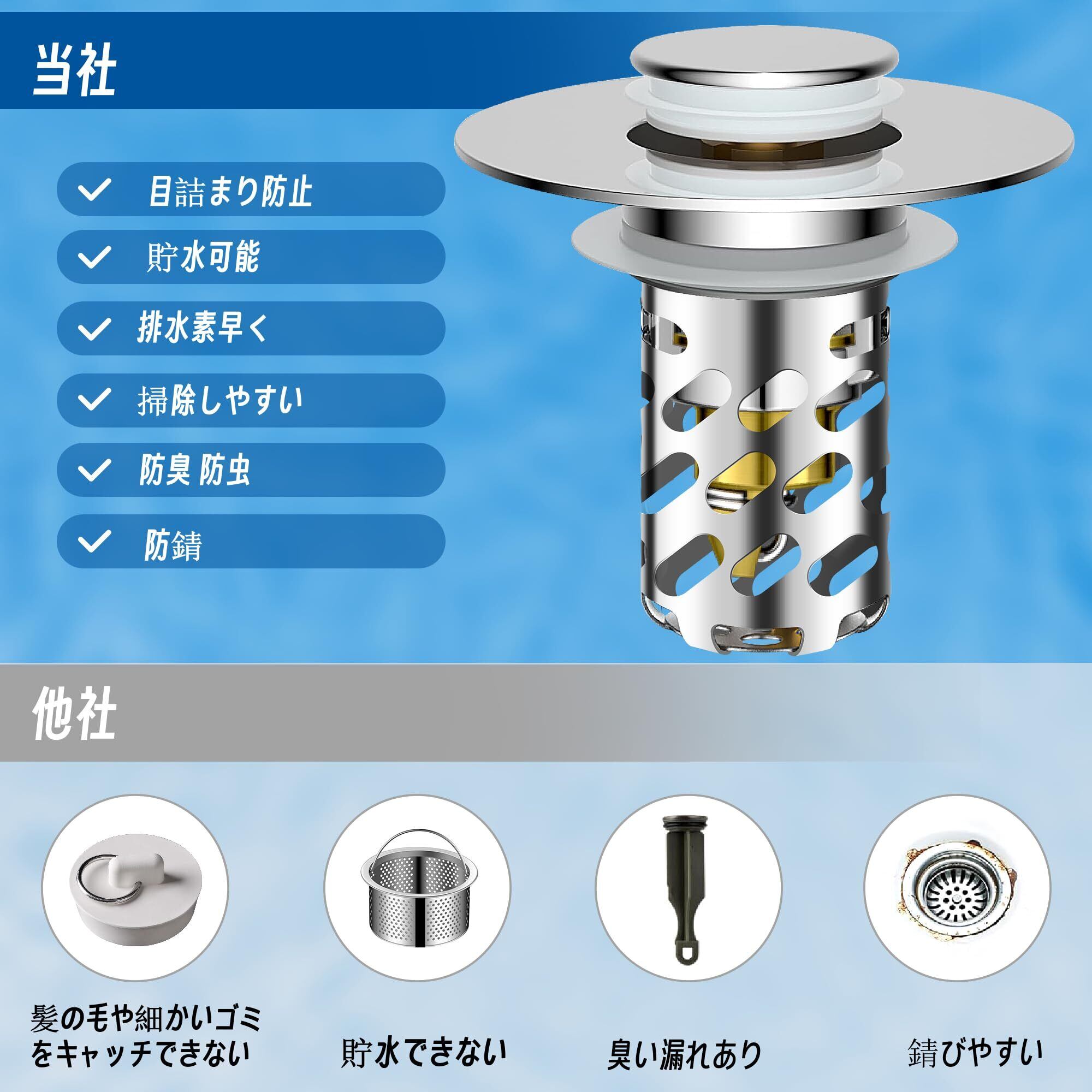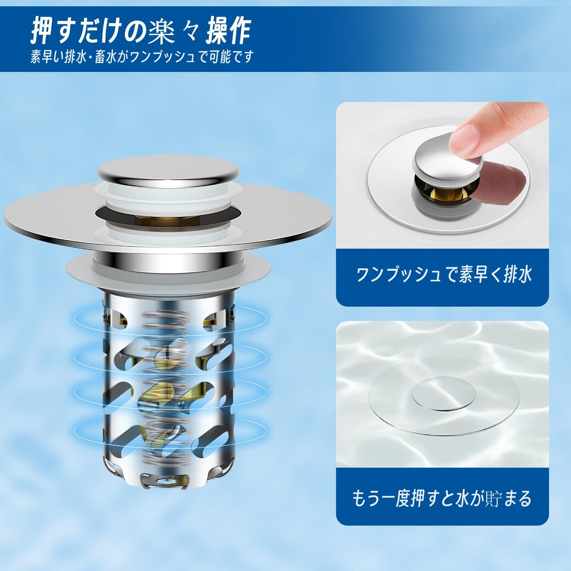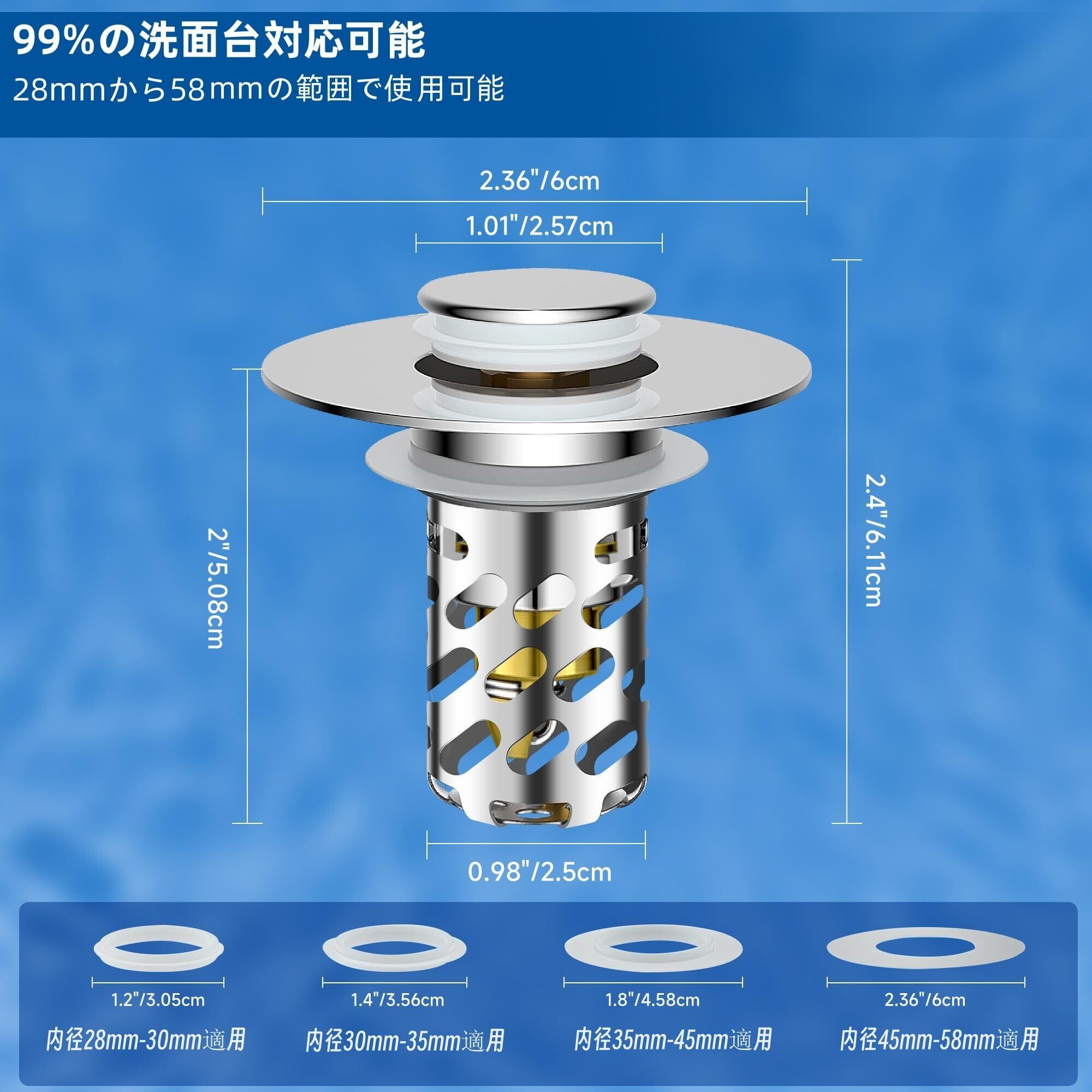 【2025最新】洗面台 ヘアキャッチャー 排水口 ポップアップ 洗面所 シンク ゴミ受け ステンレス 排水溝 風呂 台所 キッチン 流し台 取り外し 髪の毛 防臭 防虫 (内径28~58mm)