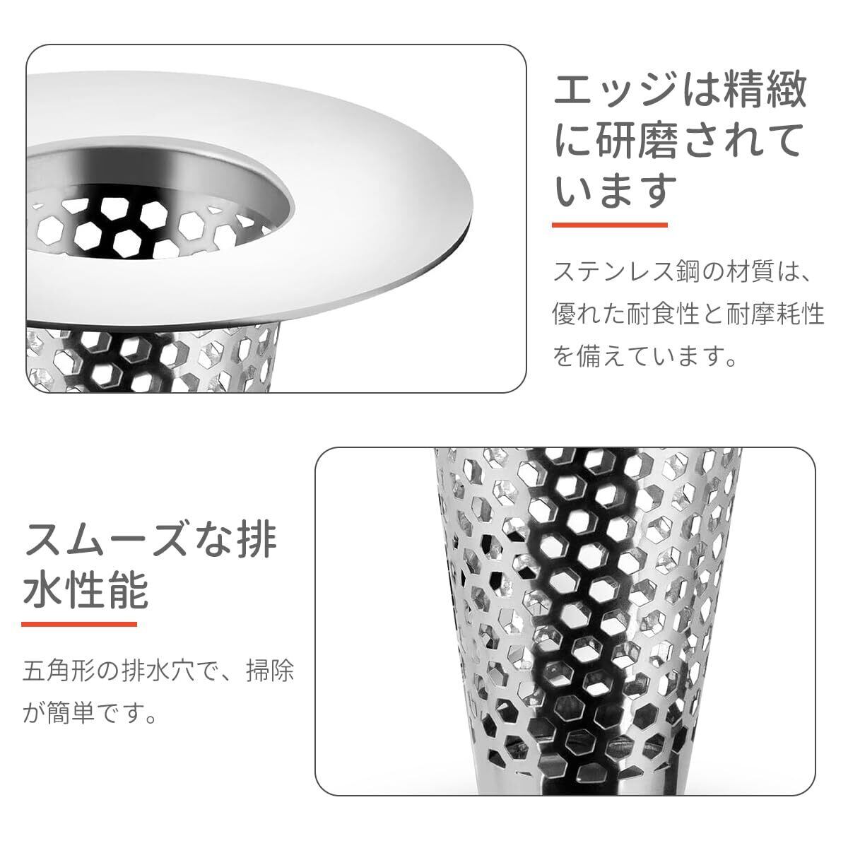 高品質のステンレス鋼で作られた 洗面台 排水栓 は、強力で耐久性があり、耐腐食性があり,湿度の高い環境での長期使用に適しています。ヘアキャッチャーは、幅2mmの小さな穴のデザインを採用しており、底面と側面に均等に分布しており、下水道の閉塞を避けるために髪、破片、宝石を効果的に捕らえることができます。排水口 ゴミ受けその円錐形の設計は、五角形の排水穴と組み合わされて、急速な排水を実現します。洗面台 ゴミ受け 毎日のクリーニングには洗浄に水のみが必要です。排水溝 ゴミ受けバスルーム、盆地、流し台などの排水システム適用されます。外径5 cm、内径2.5 cm、直径3〜4 cm、深さ40 mm以上の排水システム。知らせ:購入する前にシンクのサイズを正確に測定して、スムーズな設置を確認してください。