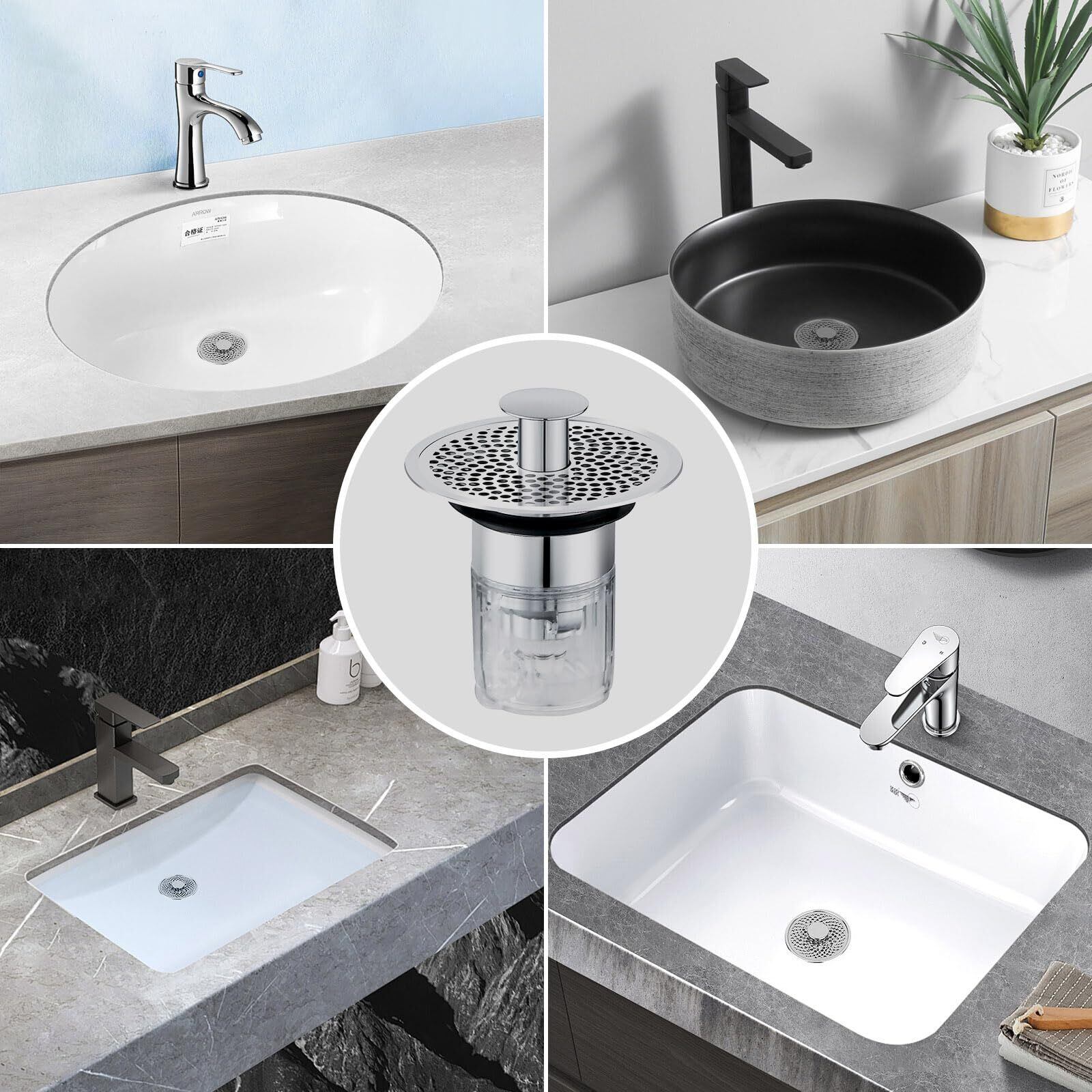 【在庫限り】洗面台 ポップアップ 排水栓 排水口 ごみ受け ステンレス製 目詰まり防止 キッチン用 台所用 浴室 (Type1, シルバー)