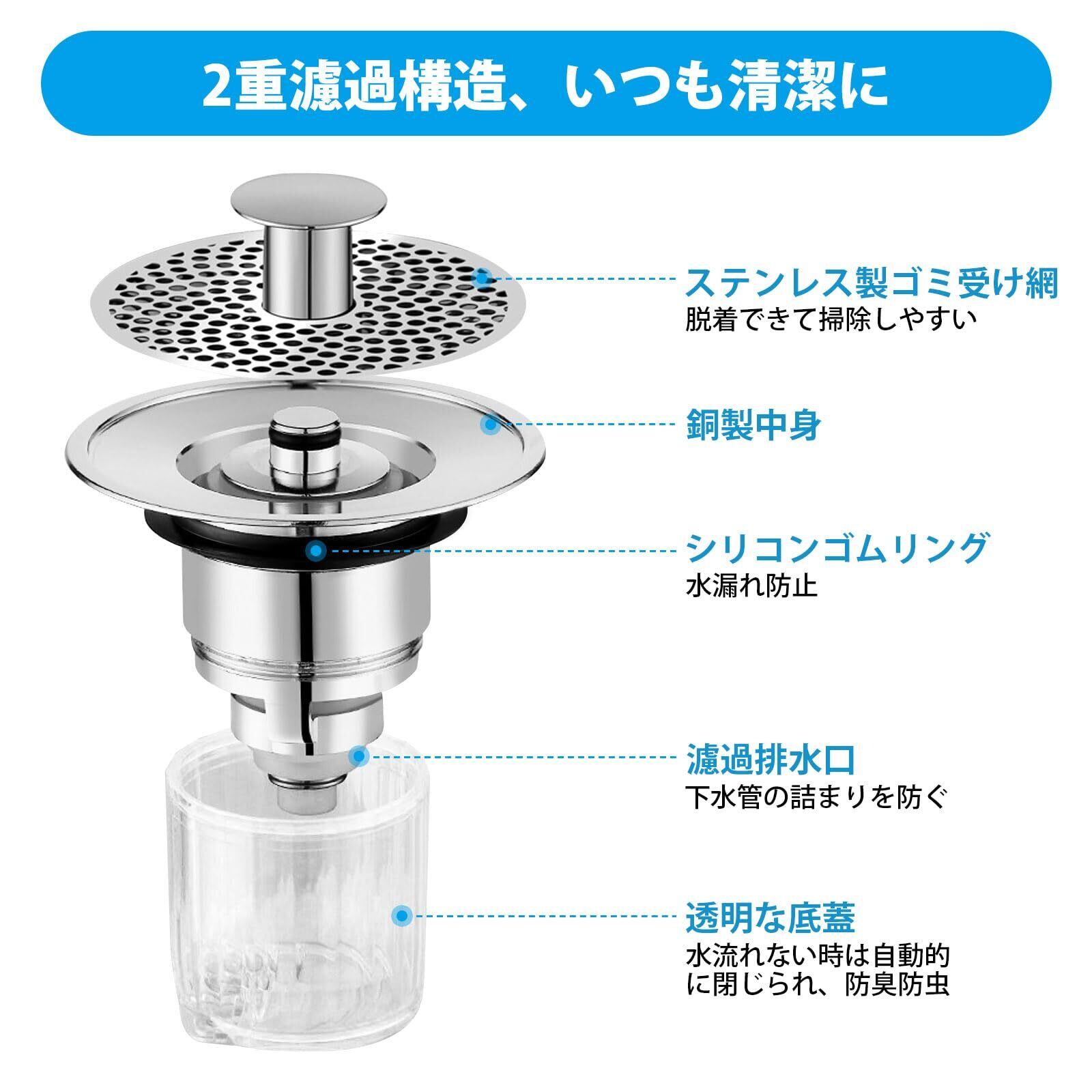 洗面台 ポップアップ 排水栓 排水口 ごみ受け ステンレス製 目詰まり防止 キッチン用 台所用 浴室 (Type1, シルバー)