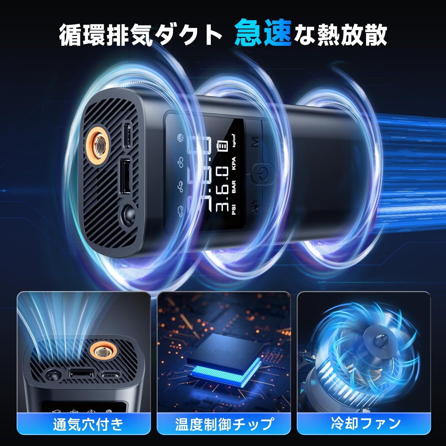【新着商品】自転車 空気入れ 電動 電動空気入れ バイク 車 用 コードレス 6000mAh 大容量バッテリー 仏/英/米式バルブ対応 自動停止 低騒音 エアポンプ