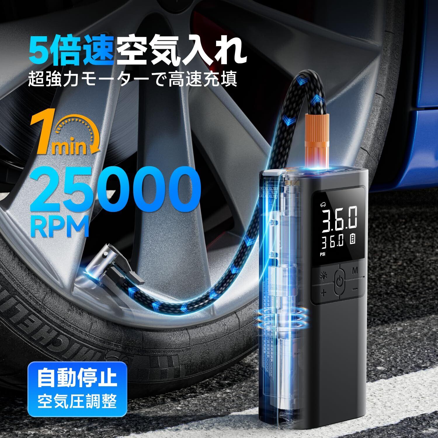 自転車 空気入れ 電動 電動空気入れ バイク 車 用 コードレス 6000mAh 大容量バッテリー 仏/英/米式バルブ対応 自動停止 低騒音 エアポンプ