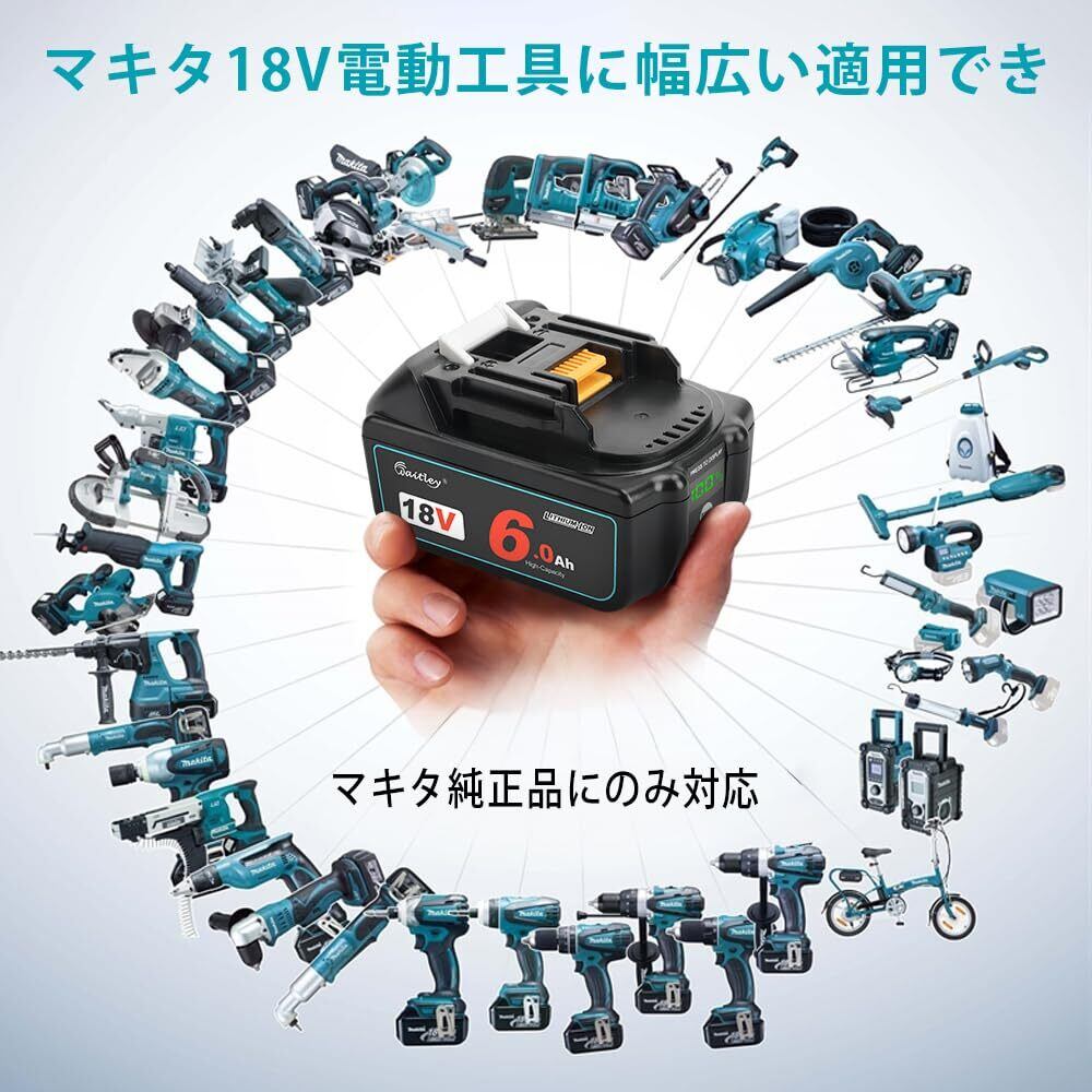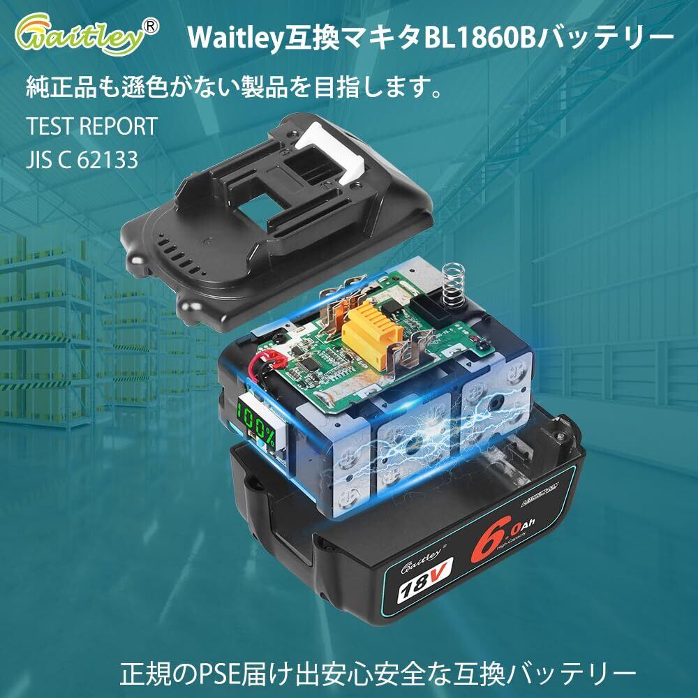 waitleyマキタ BL1860 6.0Ah互換 バッテリー 2個セット全保護基板カットオフ機能付きデジタル%残量指示付き 容量6000mAh BL1830 BL1840 BL1850 BL1890 対応 マキタ18V リチウムイオン電池 メーカーから一年間のがあり
