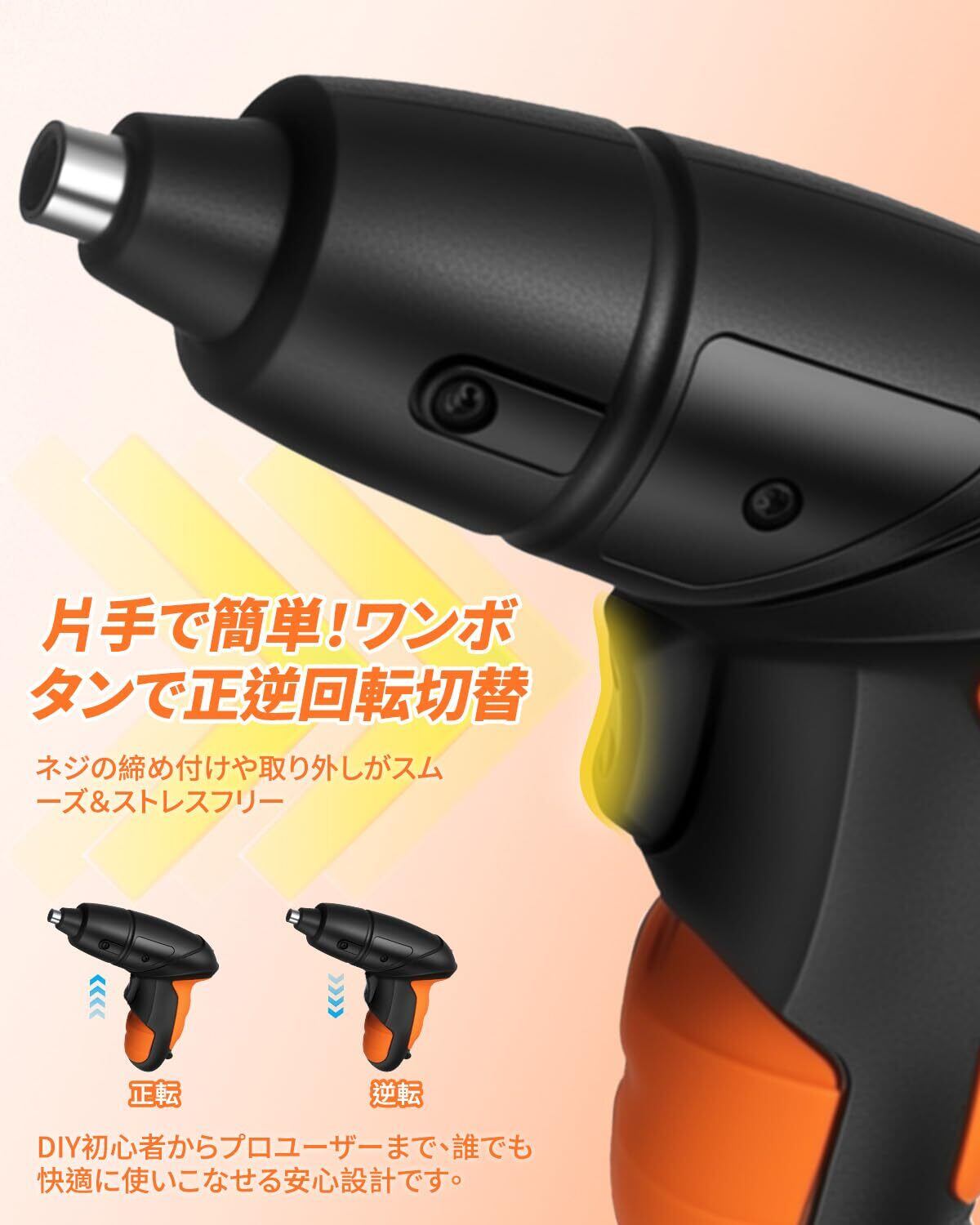 【瞬時切り替え&超耐久設計】正転と逆転の切り替えはボタン一つで瞬時に行え、ネジの締め付けと緩めをスムーズに完了。高耐久素材を採用しているため、強い力が加わる場面でもへたりにくく、プロの職人でも満足できる高い信頼性と耐久性を備えています。
