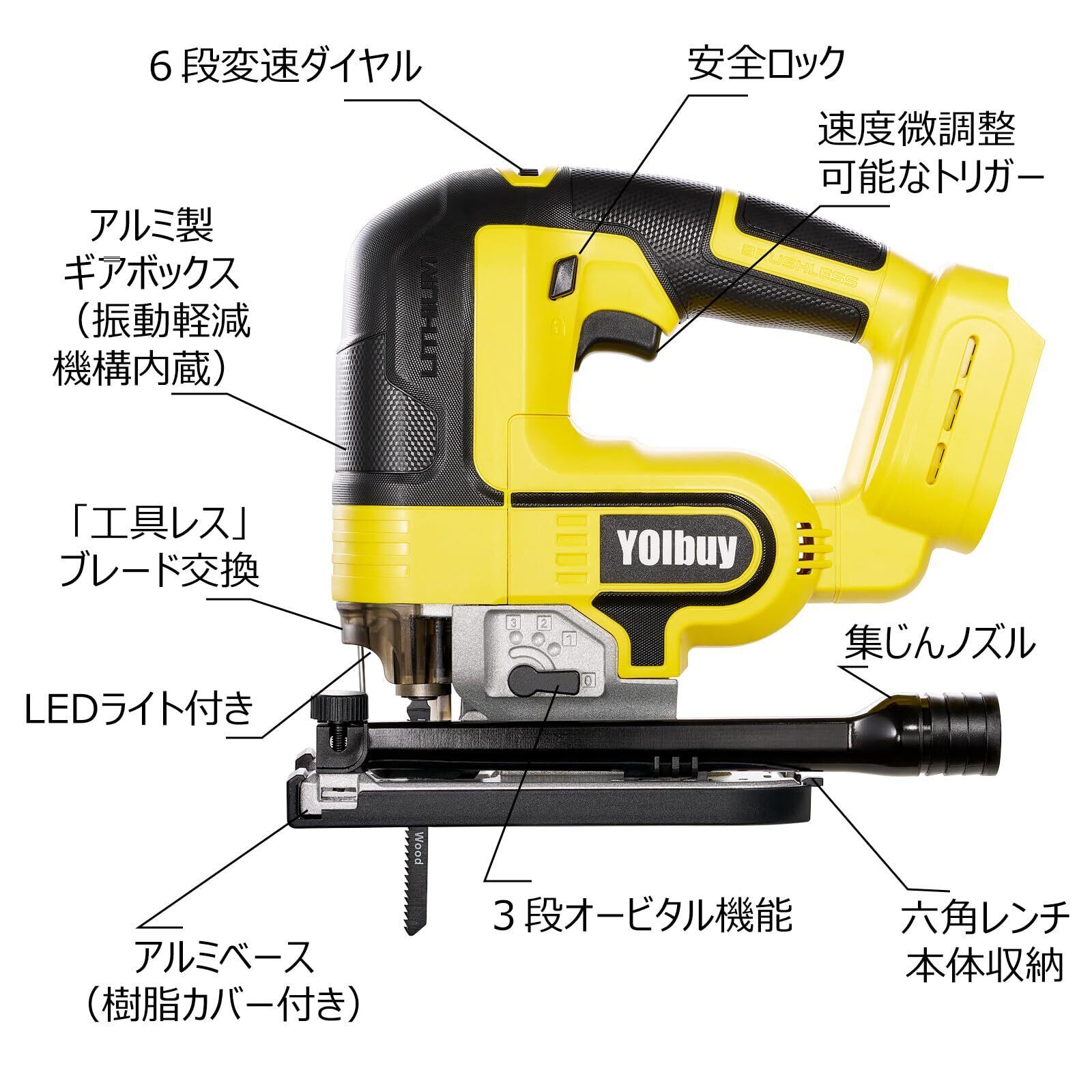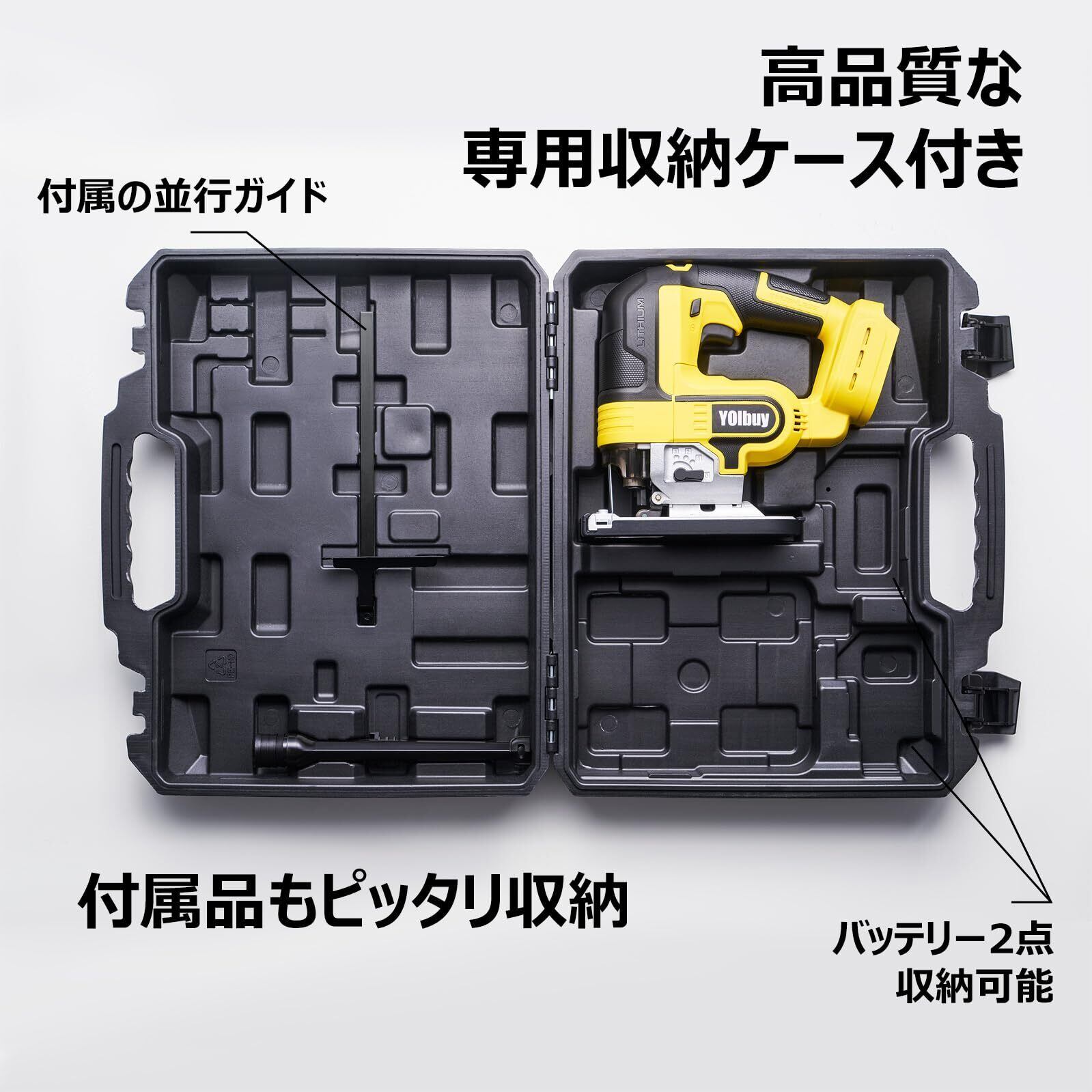 YOIbuy PRO 充電式 ジグソー ブラシレスモータ搭載 6段階変速 26mm大ストローク 振動軽減機構内蔵 3200rpmハイスピード ブレード簡単交換 高精度アルミベース LED内蔵 集じんノズル付き マキタ 18V 互換 収納ケース付き (充電器・バッテリー別売り) YJS-P26-1