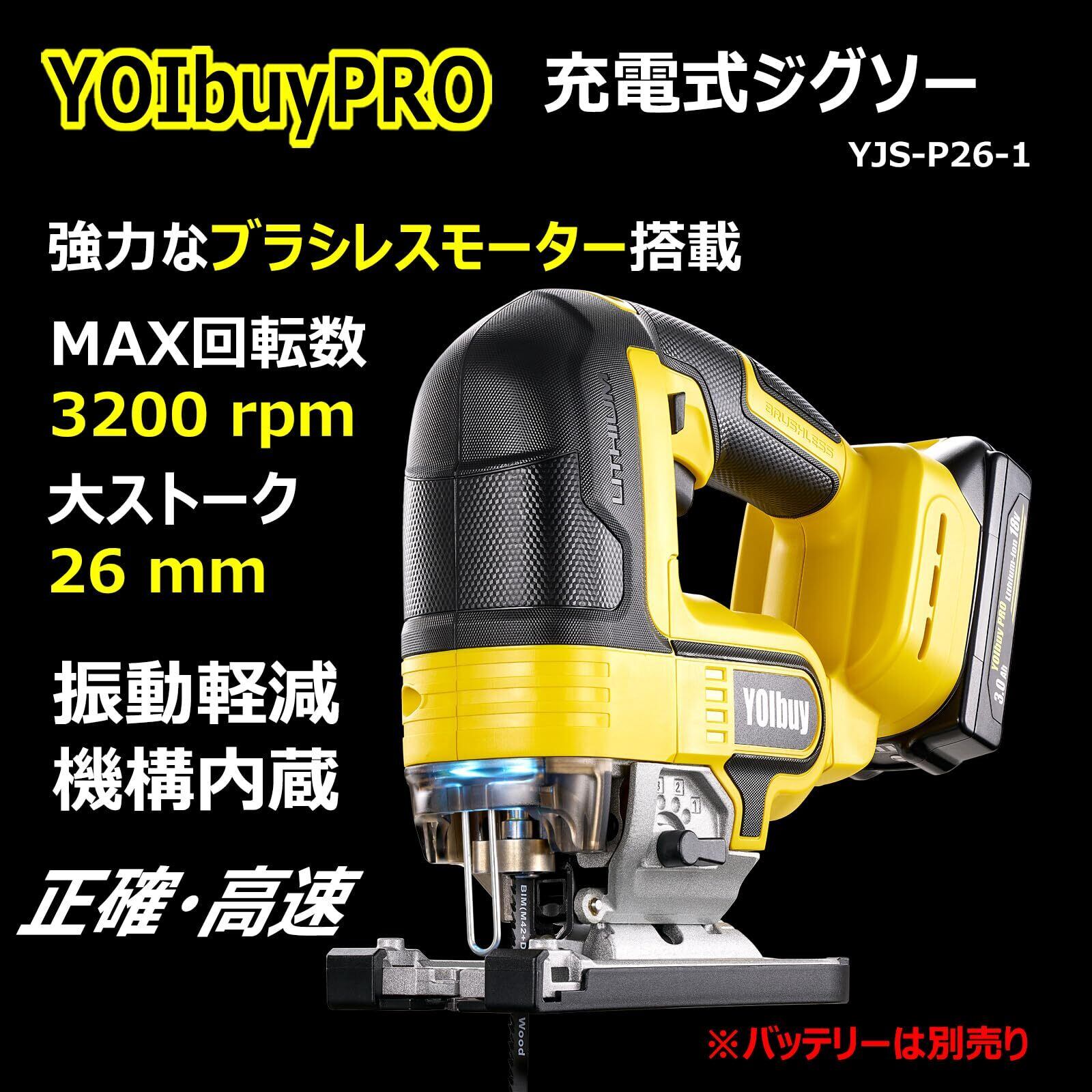 【特価セール】YOIbuy PRO 充電式 ジグソー ブラシレスモータ搭載 6段階変速 26mm大ストローク 振動軽減機構内蔵 3200rpmハイスピード ブレード簡単交換 高精度アルミベース LED内蔵 集じんノズル付き マキタ 18V 互換 収納ケース付き (充電器・バッテリー別売り) YJS-P26-1