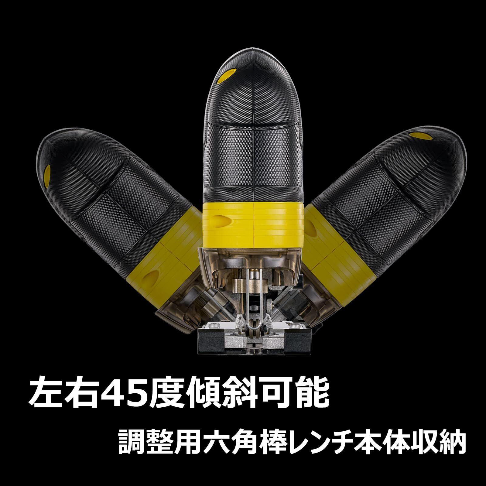【作業性】YOIbuyの充電式ジグソーはブレード交換レバーが搭載、面倒なブレード交換を簡単に。集じんノズルとLEDライト付き、傾斜調整レンチも本体に収納、そして収納ケースも付きで、細かいところにも拘る自信作です。